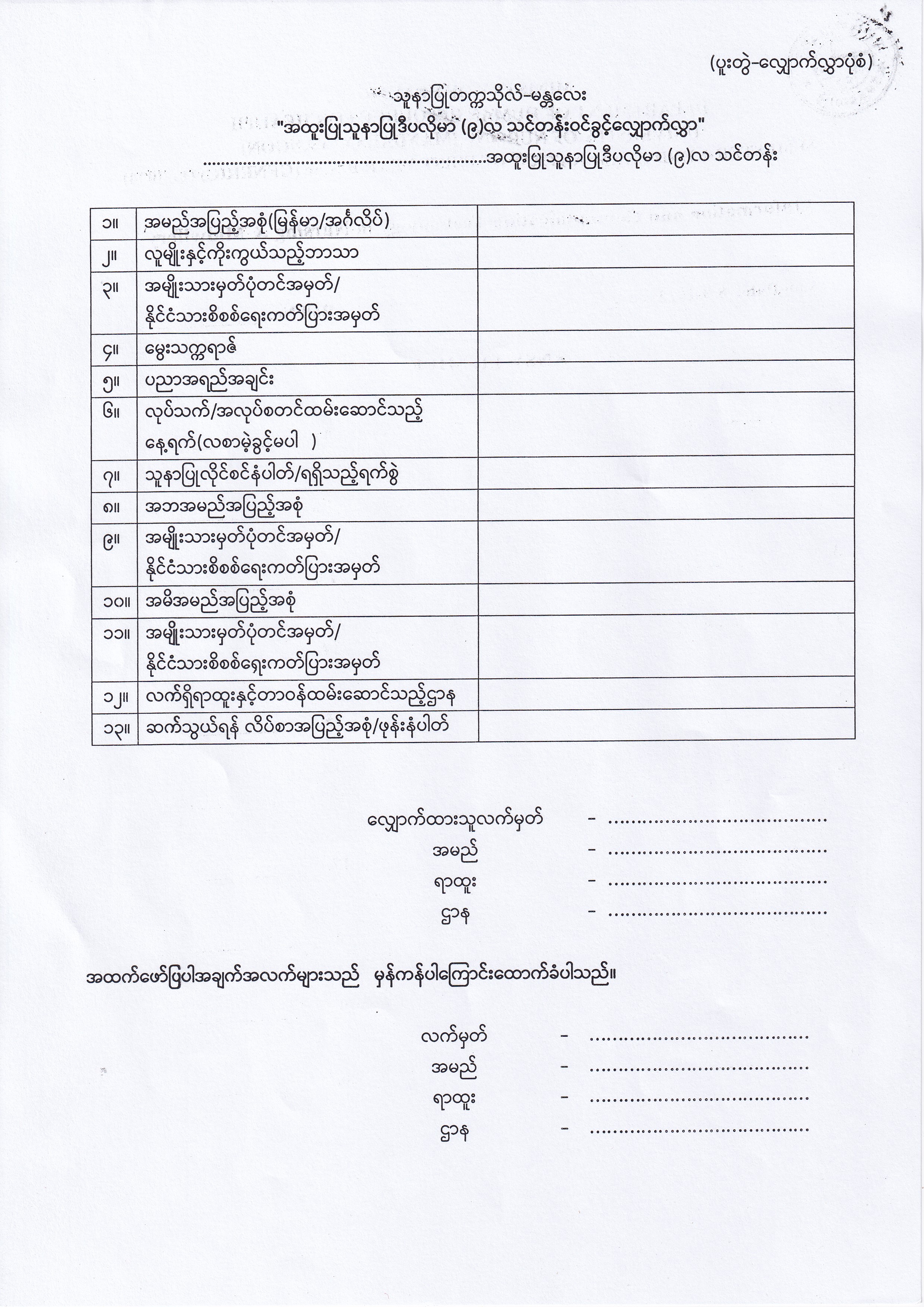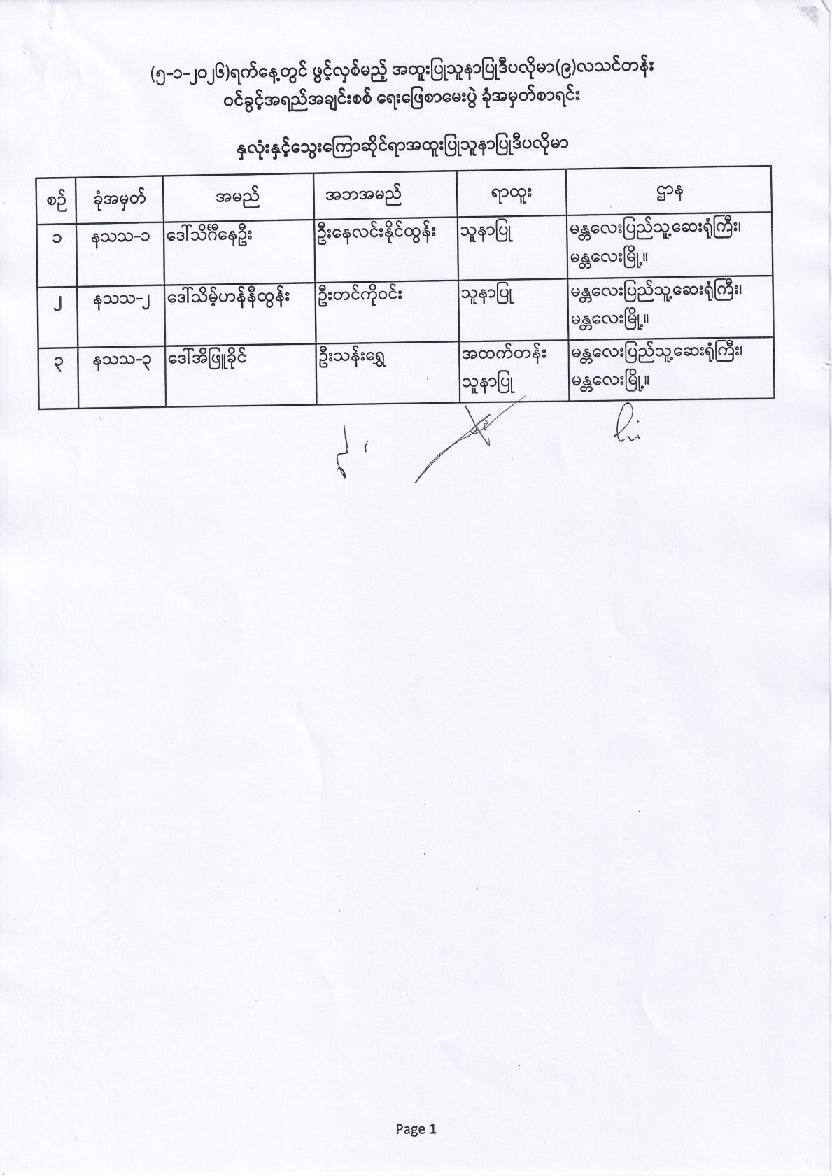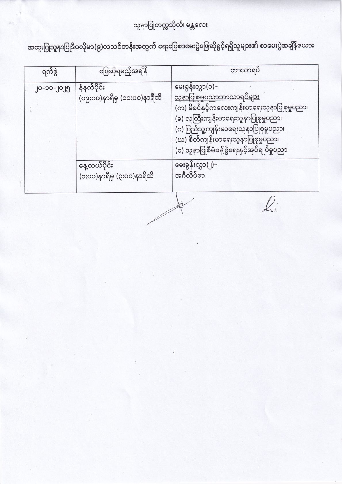 သူနာပြုတက္ကသိုလ်-မန္တလေး၌ (၅-၁-၂၀၂၆) ရက်နေ့၌ဖွင့်လှစ်မည့် အထူးပြုသူနာပြုဒီပလိုမာ (၉)လသင်တန်းအတွက် ရေးဖြေစာမေးပွဲဖြေဆိုခွင့်ရရှိသူများ၏ ခုံအမှတ်စာရင်းနှင့် စာမေးပွဲအချိန်စာရင်း