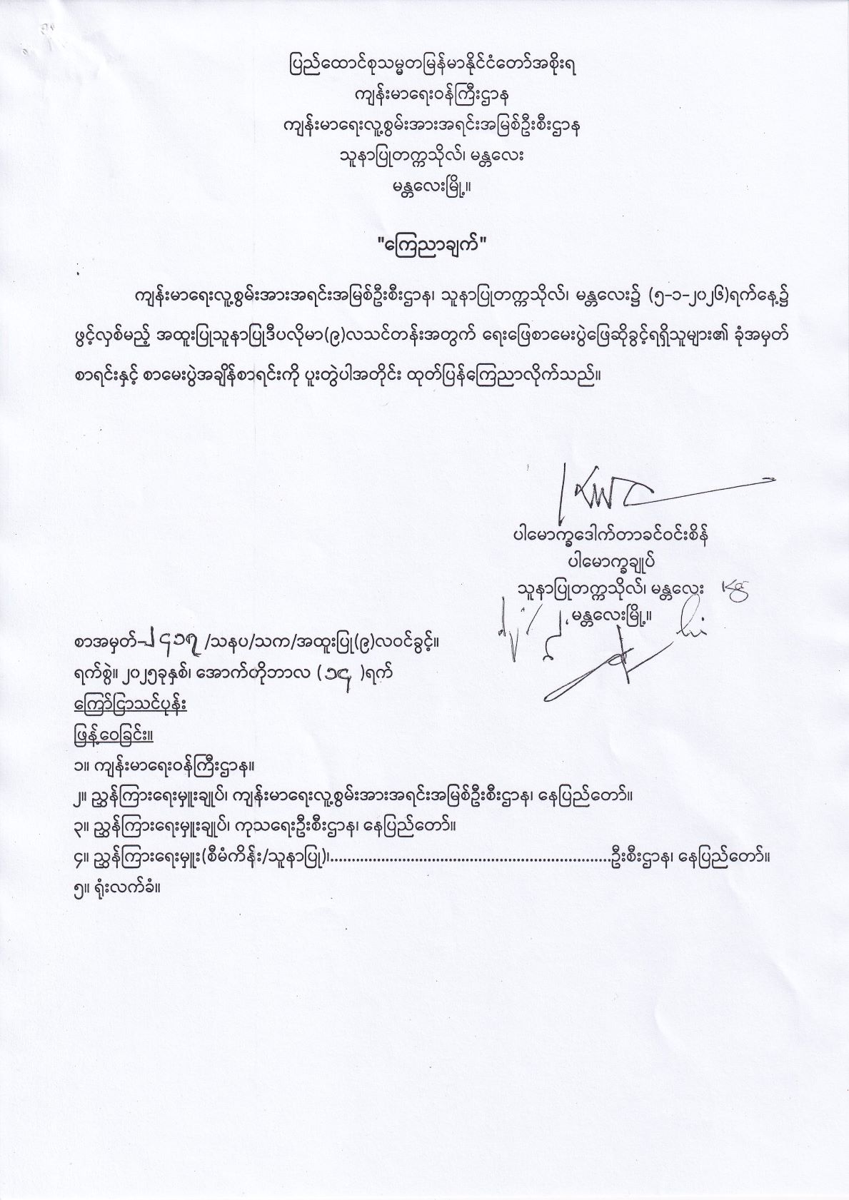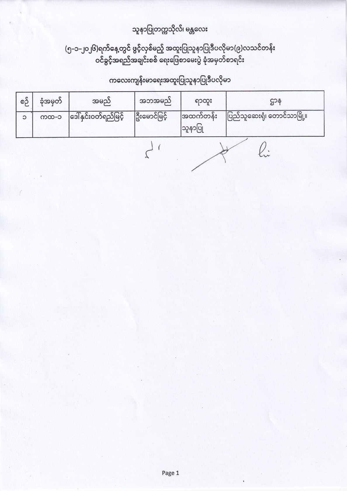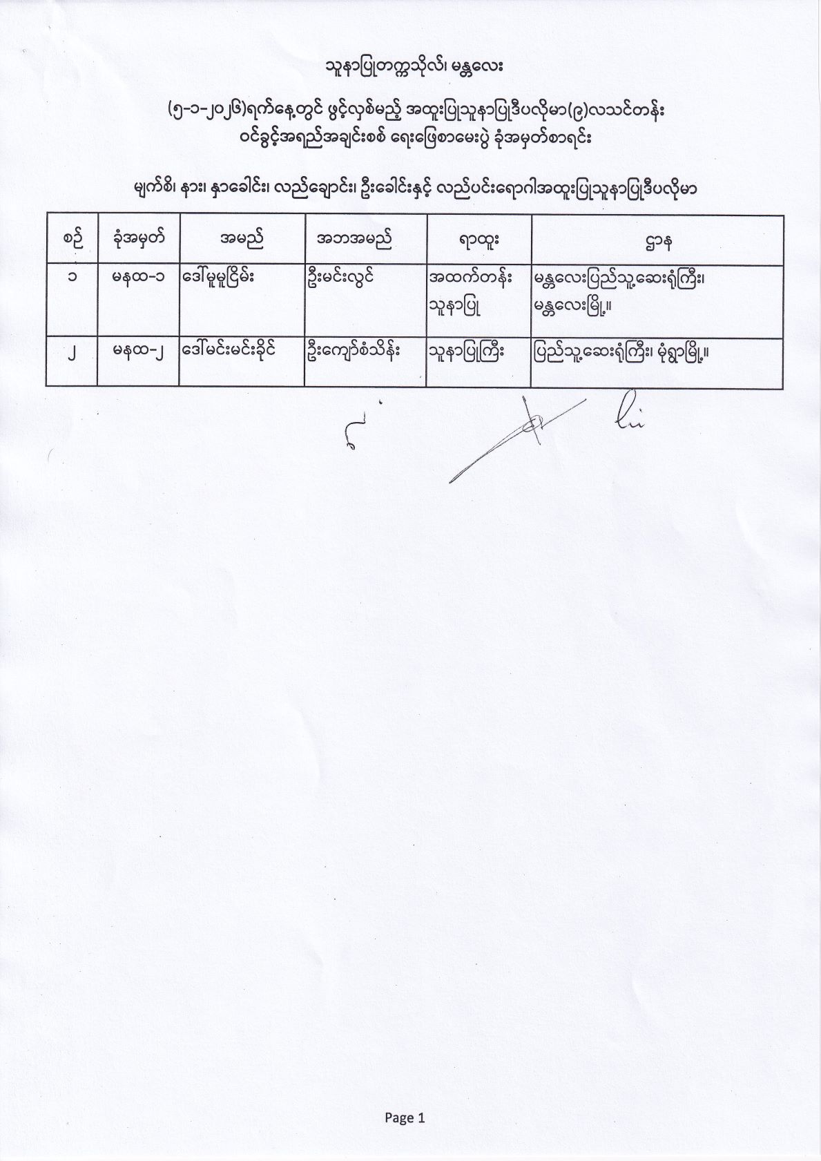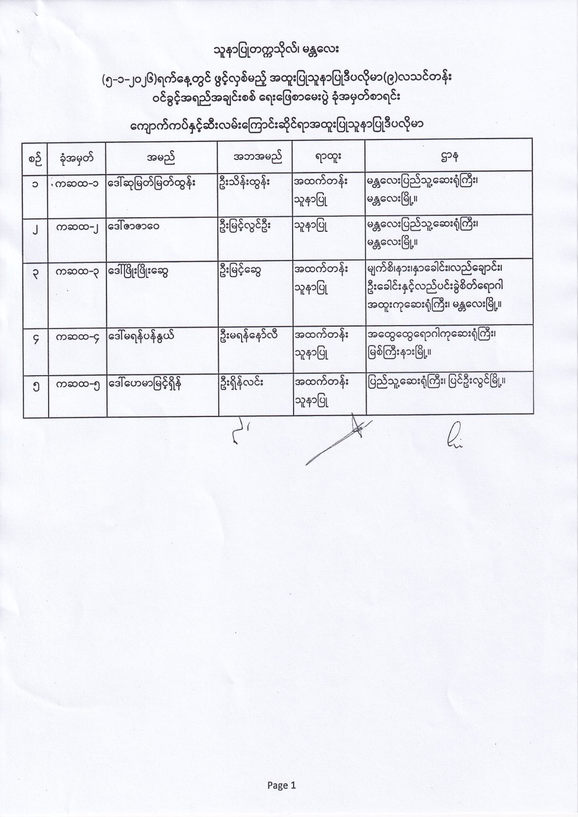 သူနာပြုတက္ကသိုလ်-မန္တလေး၌ (၅-၁-၂၀၂၆) ရက်နေ့၌ဖွင့်လှစ်မည့် အထူးပြုသူနာပြုဒီပလိုမာ (၉)လသင်တန်းအတွက် ရေးဖြေစာမေးပွဲဖြေဆိုခွင့်ရရှိသူများ၏ ခုံအမှတ်စာရင်းနှင့် စာမေးပွဲအချိန်စာရင်း