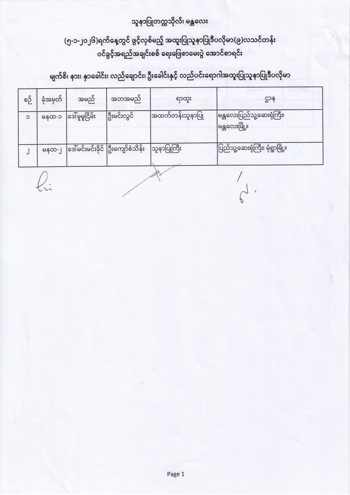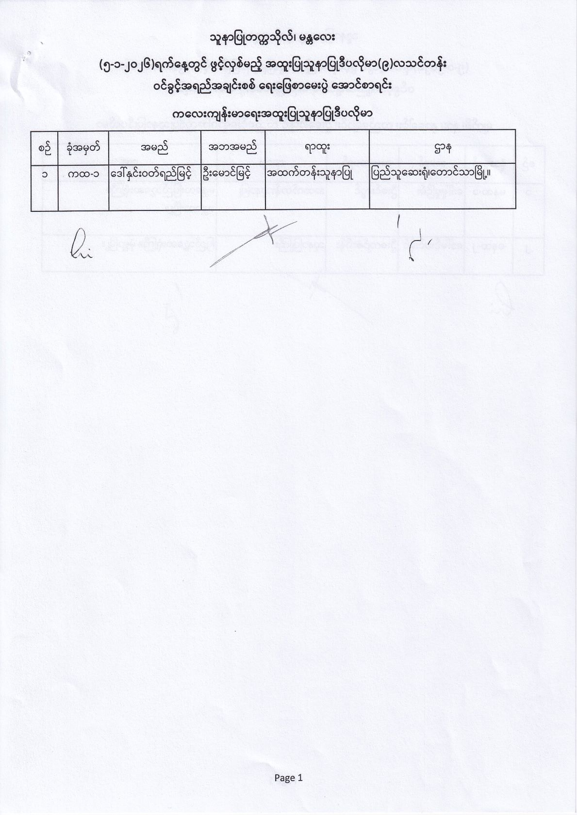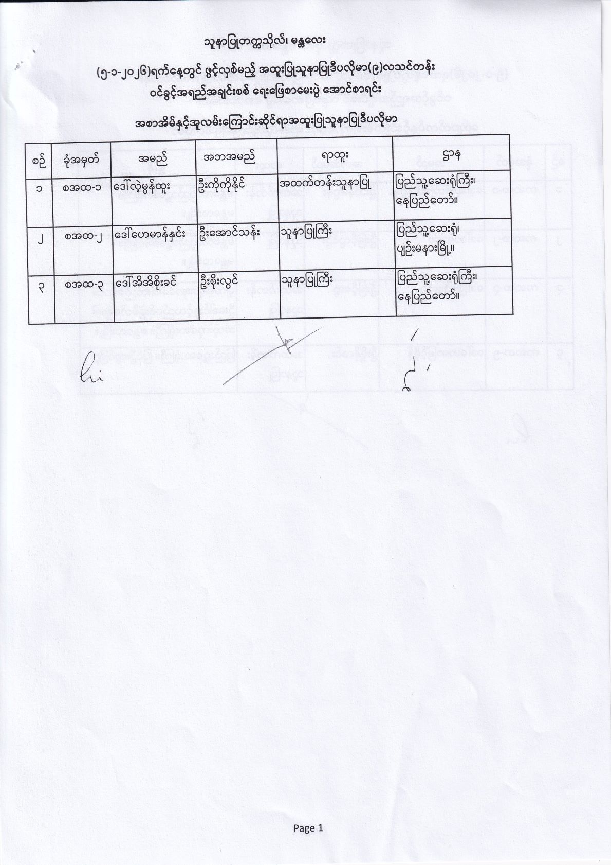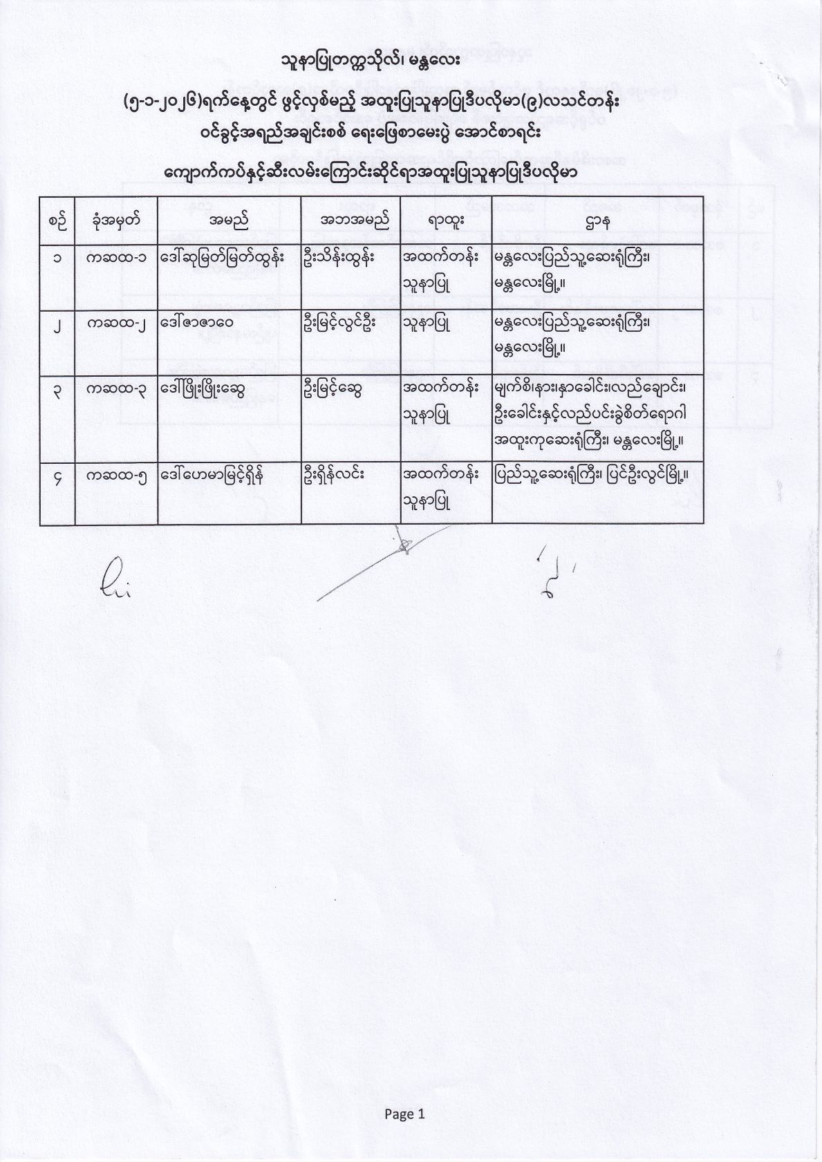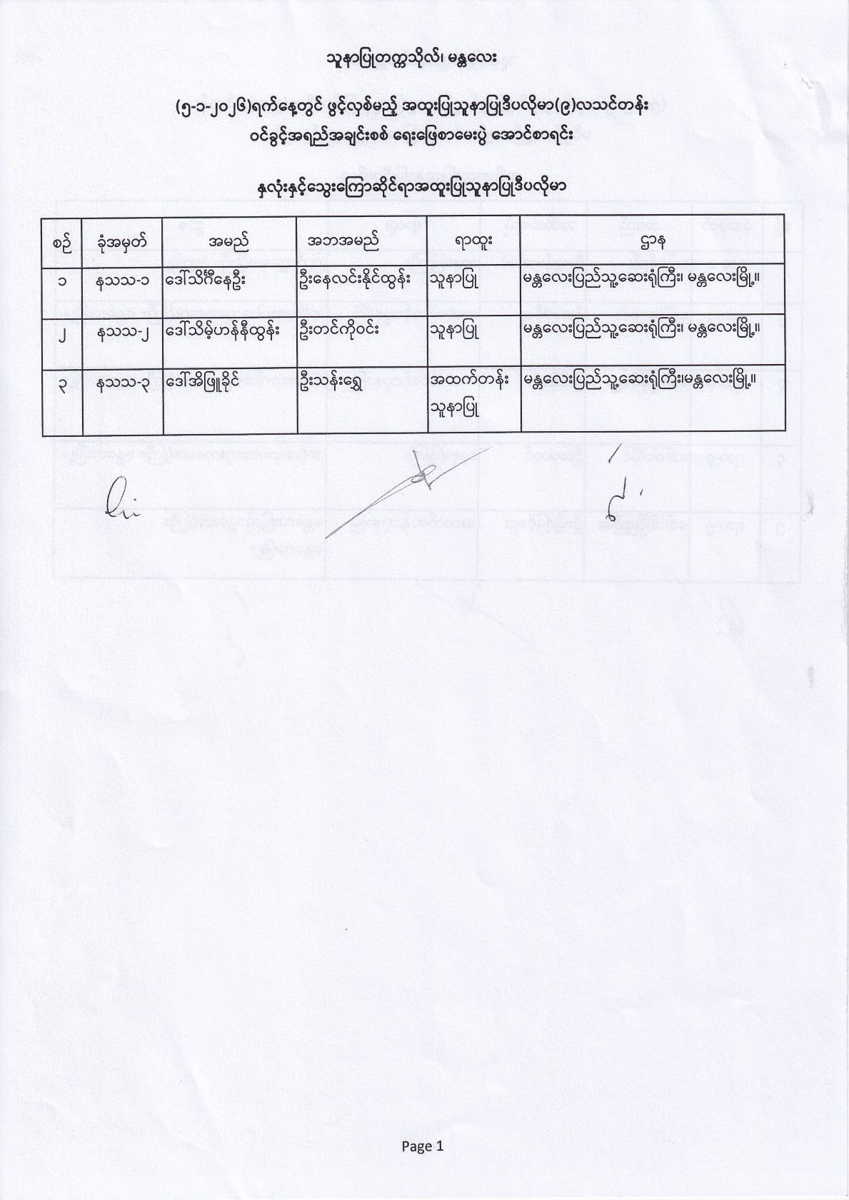 သူနာပြုတက္ကသိုလ်-မန္တလေး၌ ၂၀၂၆ ပညာသင်နှစ် အတွက် ဖွင့်လှစ်မည့် အထူးသူနာပြုဒီပလိုမာ (၉)လသင်တန်း၏ ဝင်ခွင့်အရည်အချင်းစစ် ရေးဖြေ စာမေးပွဲအောင်မြင်သူများစာရင်းနှင့် ဝင်ခွင့်လူတွေ့နှုတ်ဖြေစာမေးပွဲဖြေဆိုရမည့် အစီအစဉ်