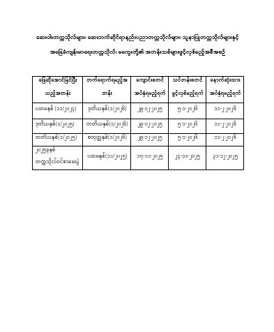 ဆေးဝါးတက္ကသိုလ်များ၊ ဆေးဘက်ဆိုင်ရာနည်းပညာတက္ကသိုလ်များ၊ သူနာပြုတက္ကသိုလ်များနှင့် အခြေခံကျန်းမာရေးတက္ကသိုလ်၊ မကွေးတို့၏ အတန်းသစ်များဖွင့်လှစ်မည့်အစီအစဉ်