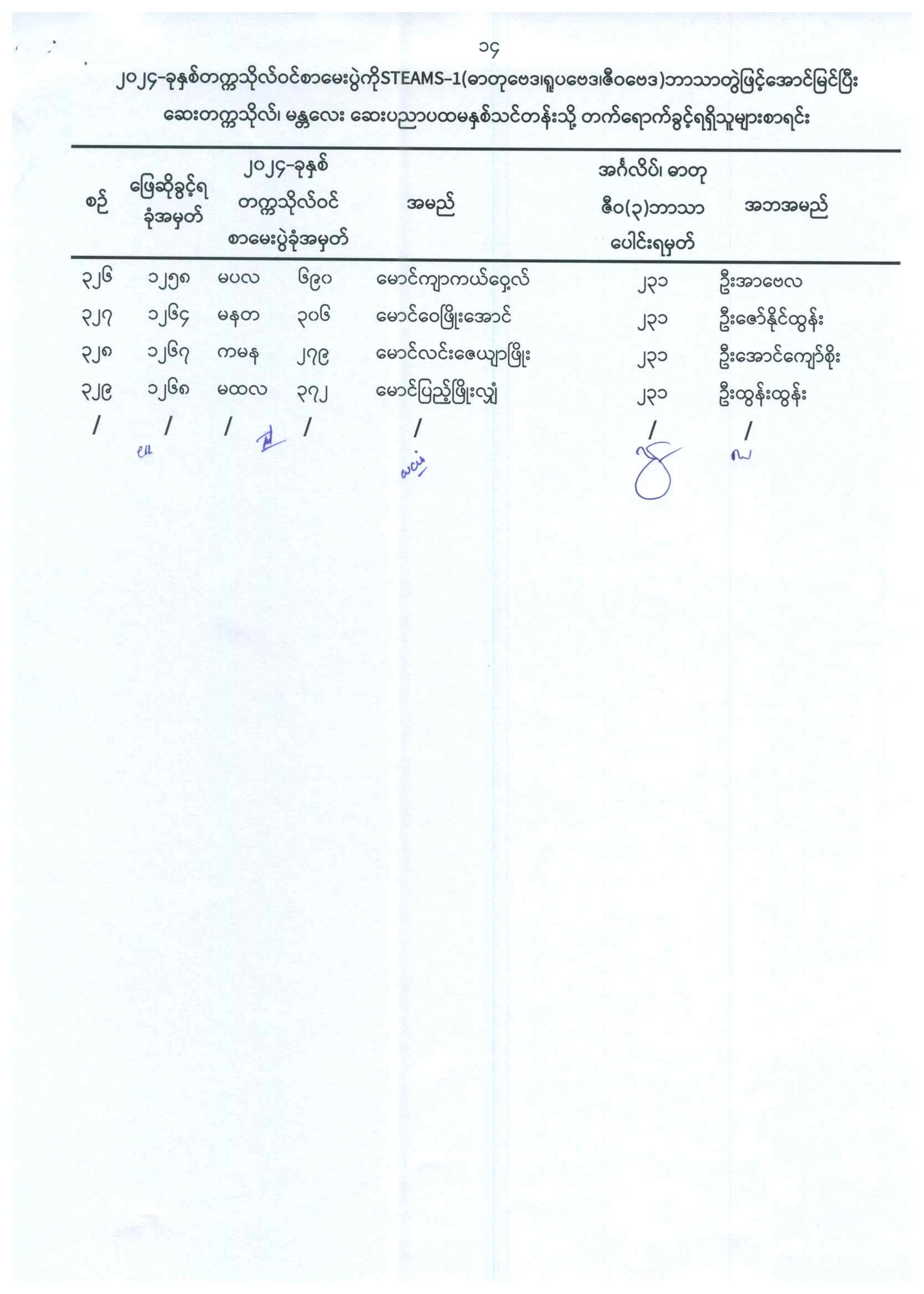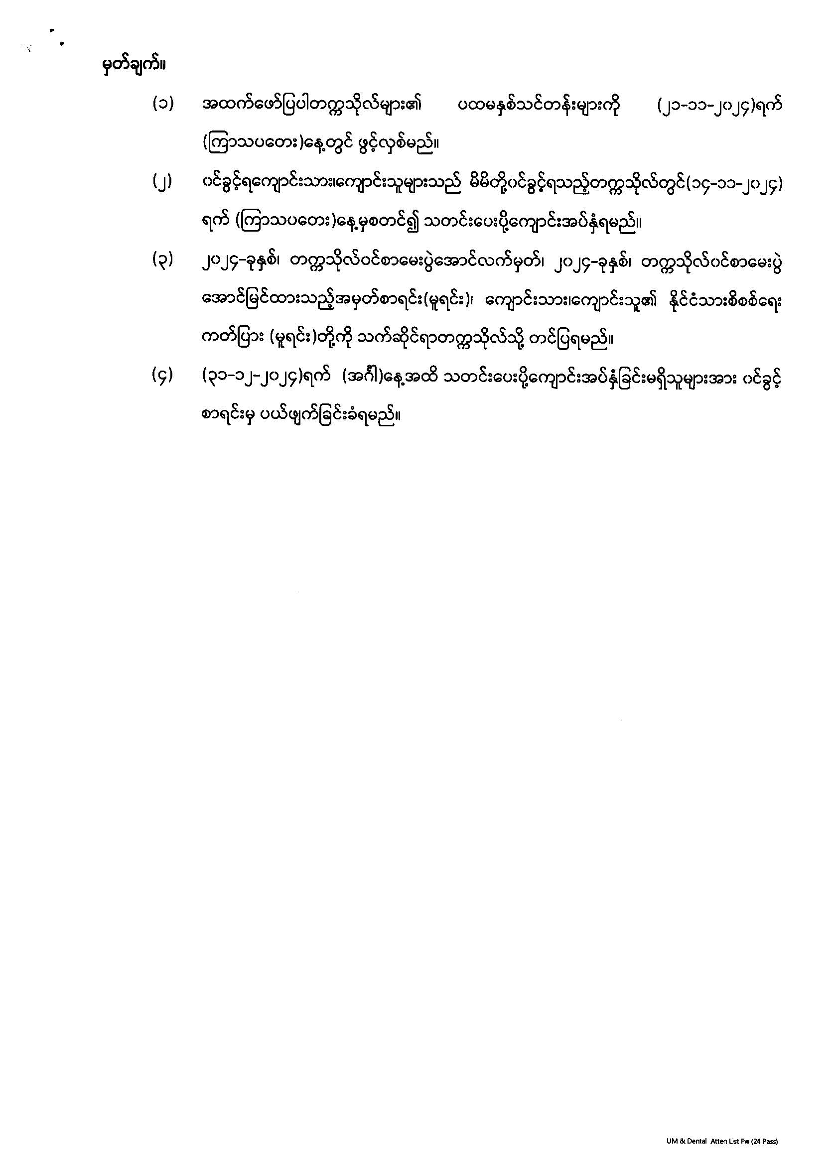 ၂၀၂၅-ပညာသင်နှစ် သွားဘက်ဆိုင်ရာဆေးတက္ကသိုလ်(ရန်ကုန်၊ မန္တလေး) ပထမနှစ်သင်တန်းသို့ ဝင်ခွင့်ရရှိသောကျောင်းသားကျောင်းသူများစာရင်း