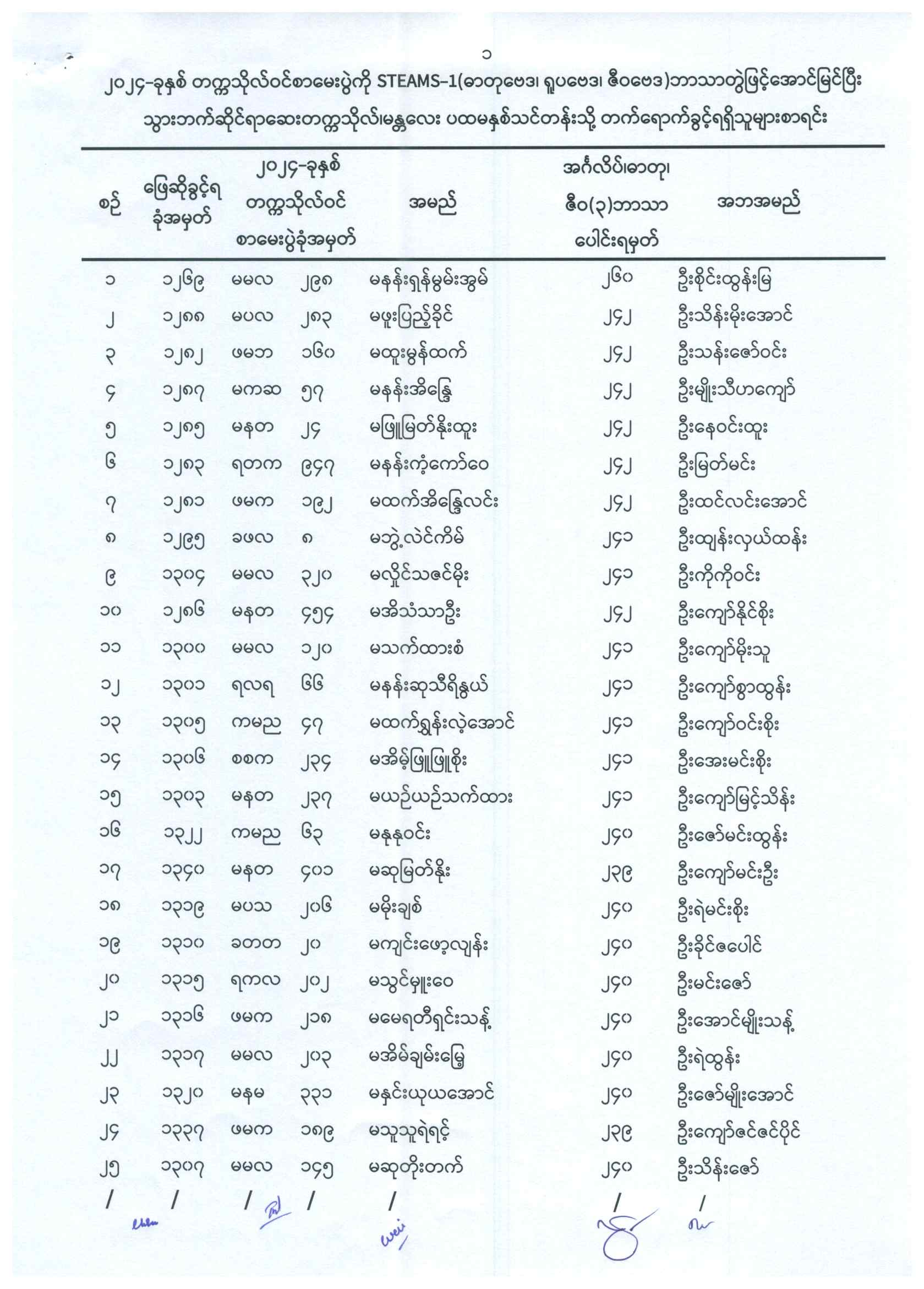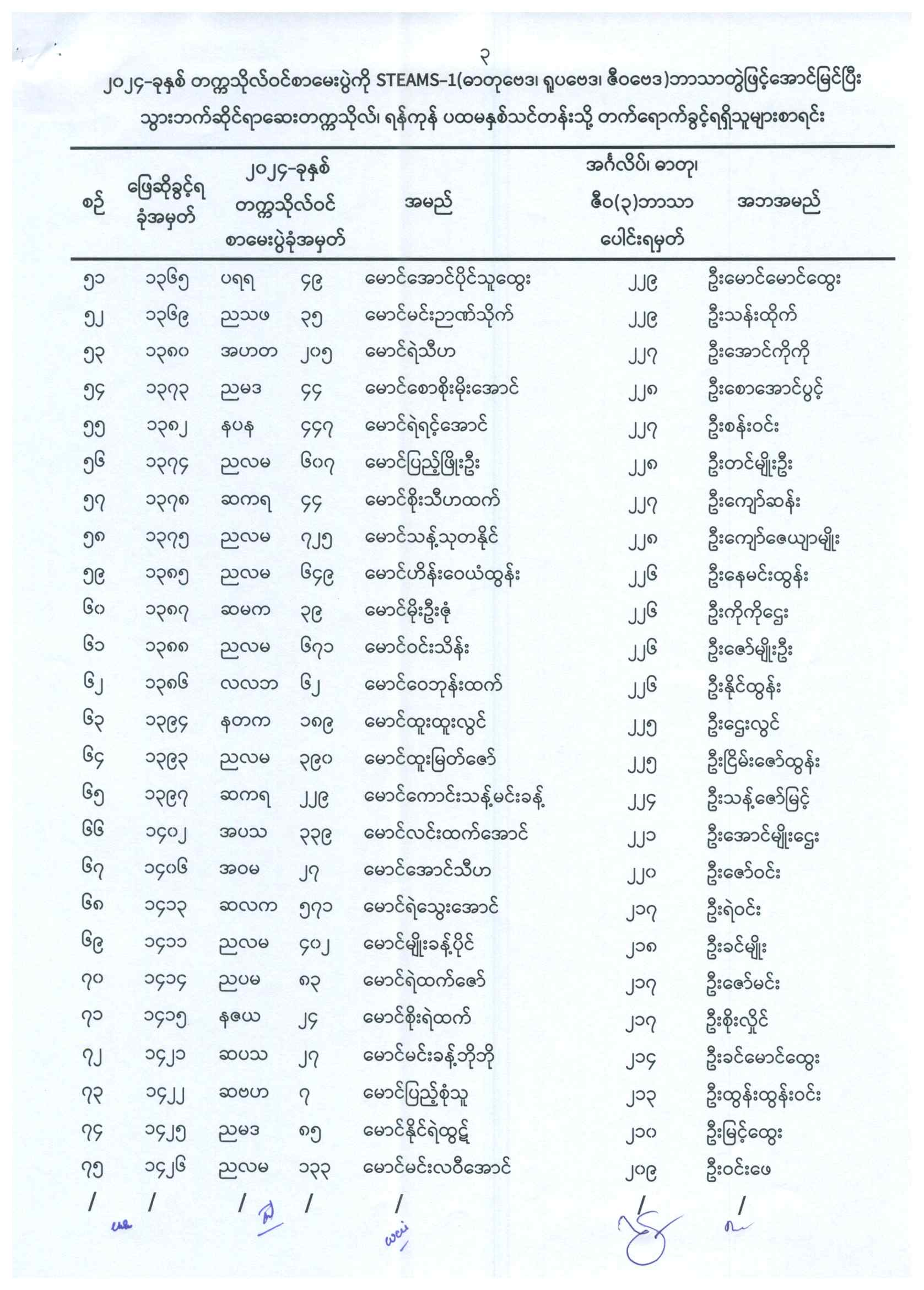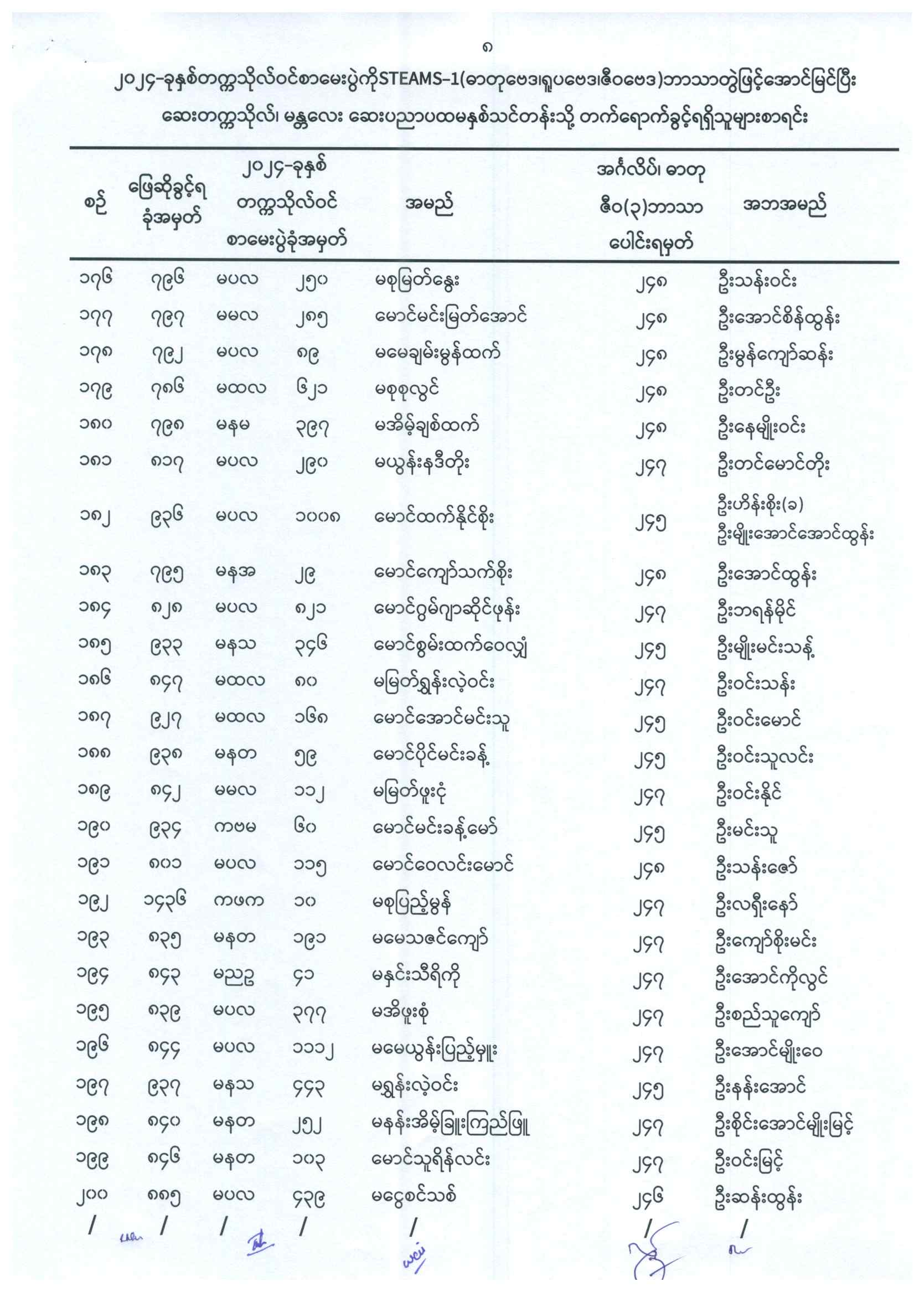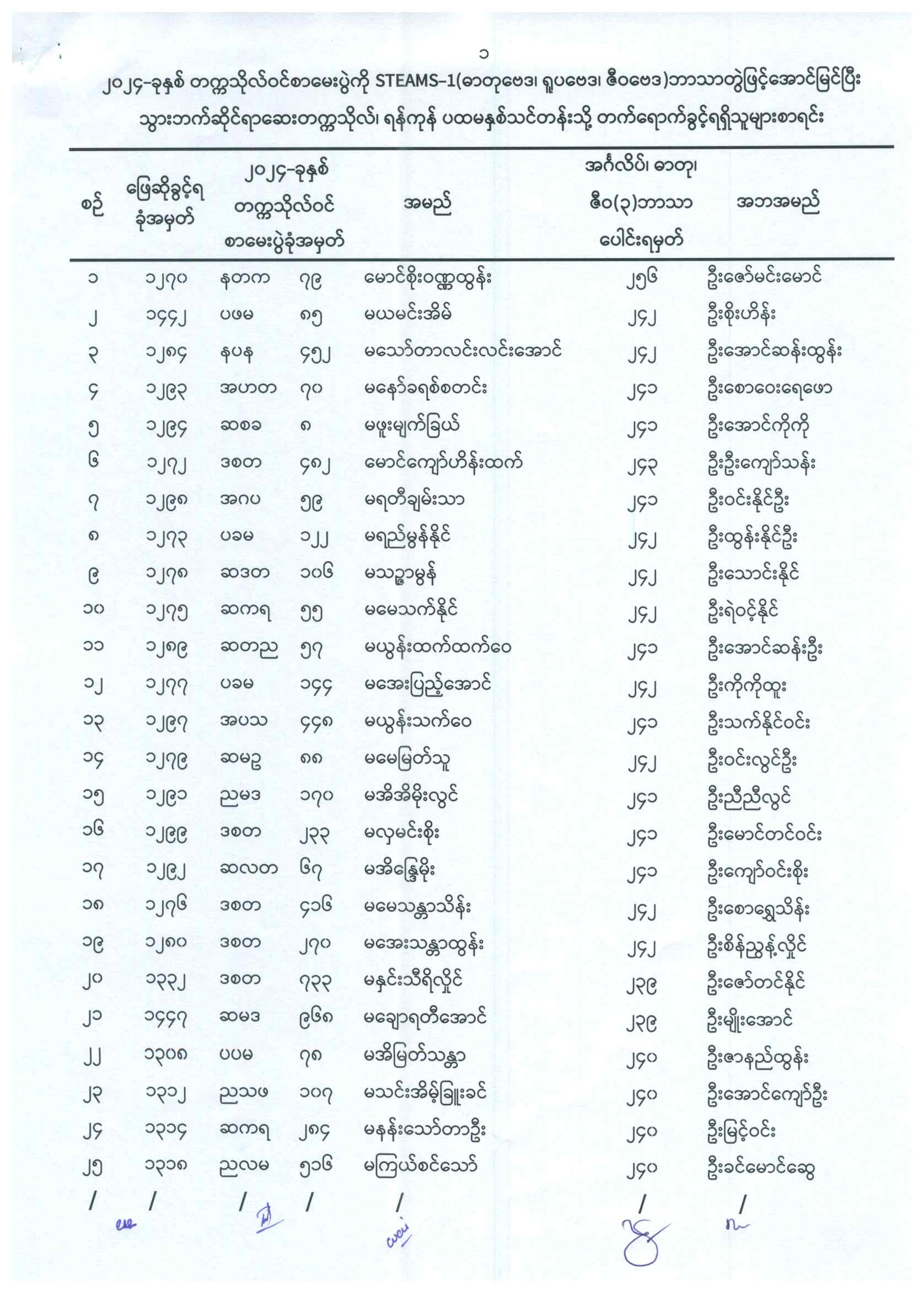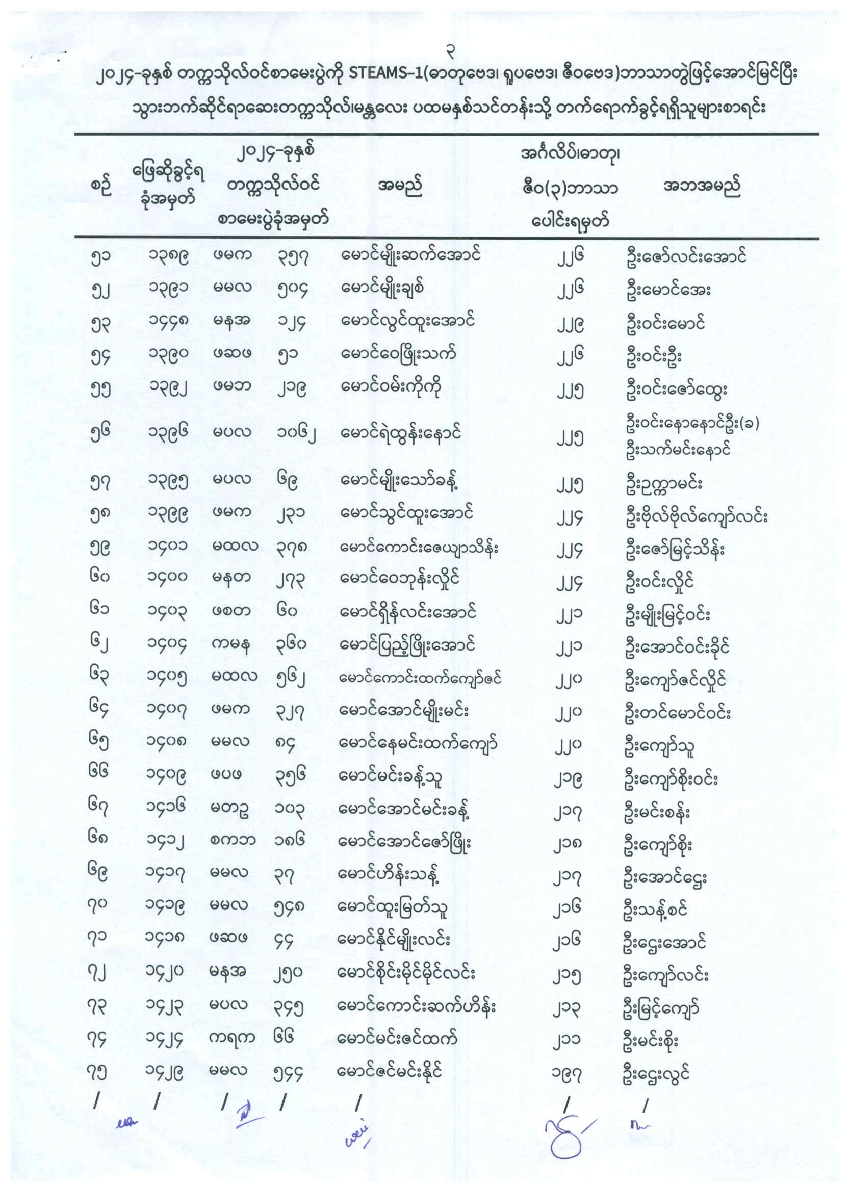၂၀၂၅-ပညာသင်နှစ် ဆေးတက္ကသိုလ်(မန္တလေး) ပထမနှစ်သင်တန်းသို့ ဝင်ခွင့်ရရှိသောကျောင်းသားကျောင်းသူများစာရင်း