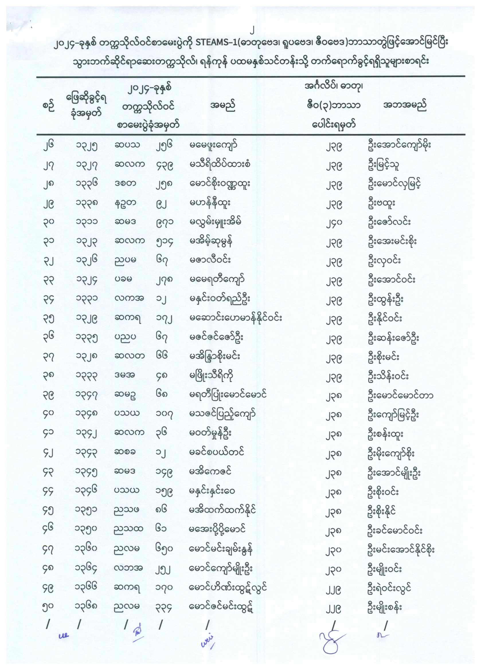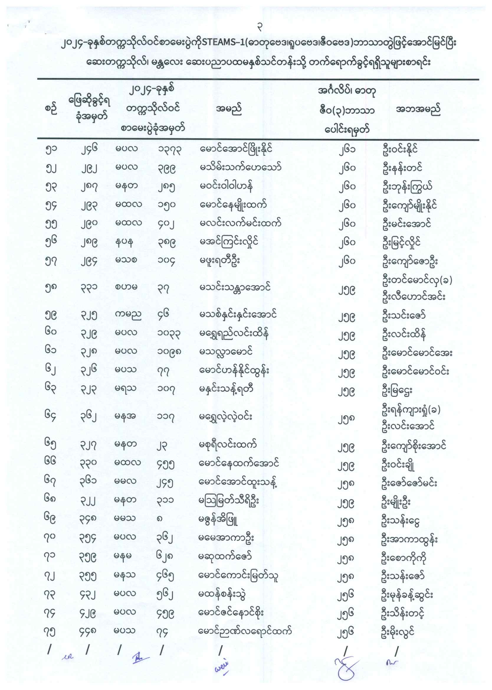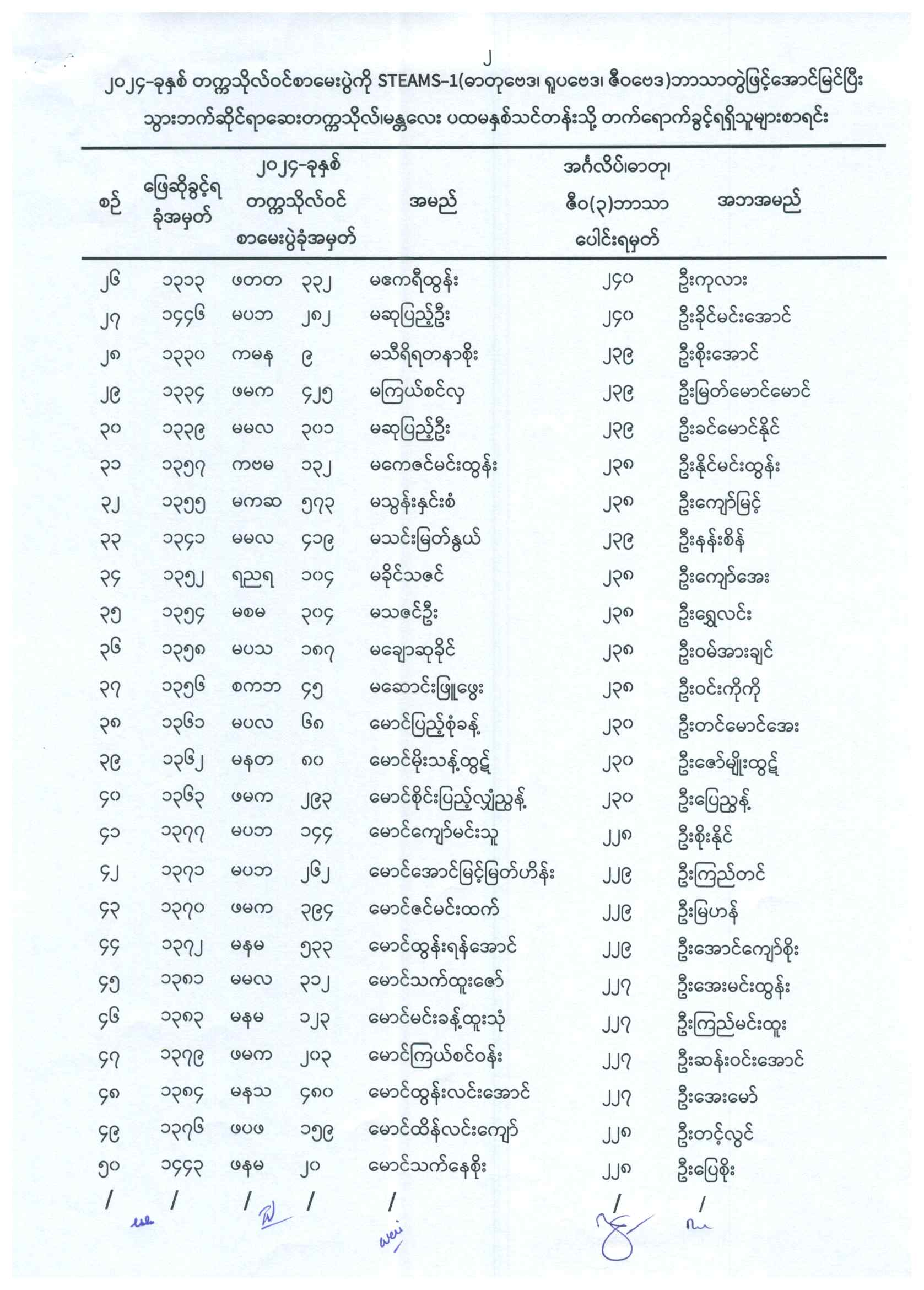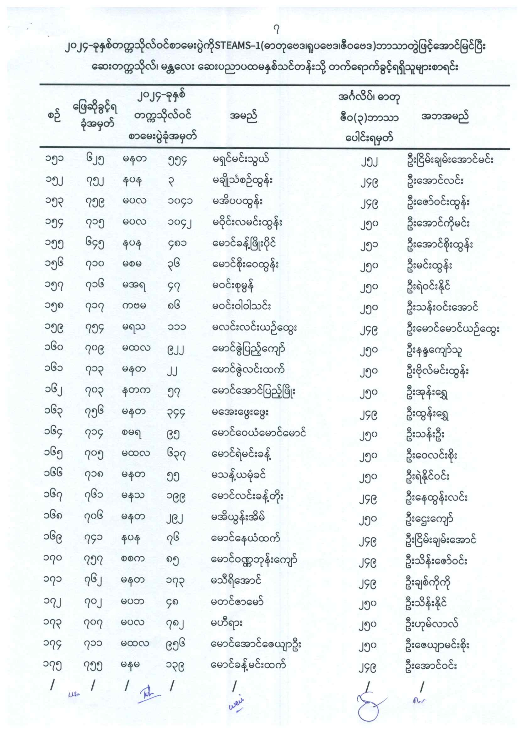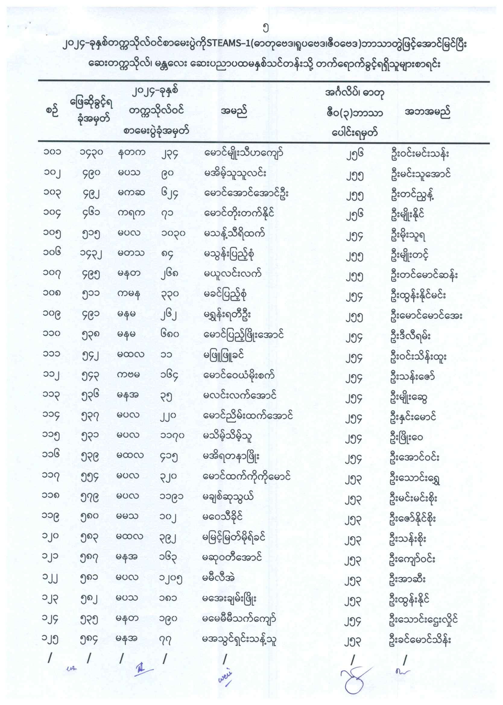 ၂၀၂၅-ပညာသင်နှစ် ဆေးတက္ကသိုလ်(မန္တလေး) ပထမနှစ်သင်တန်းသို့ ဝင်ခွင့်ရရှိသောကျောင်းသားကျောင်းသူများစာရင်း