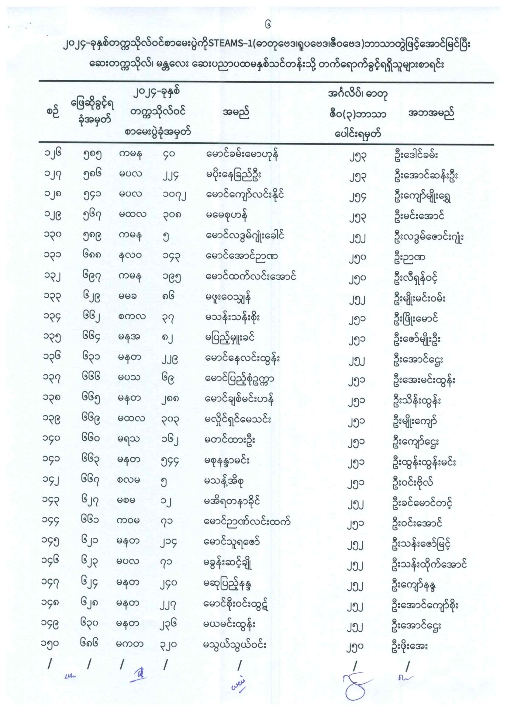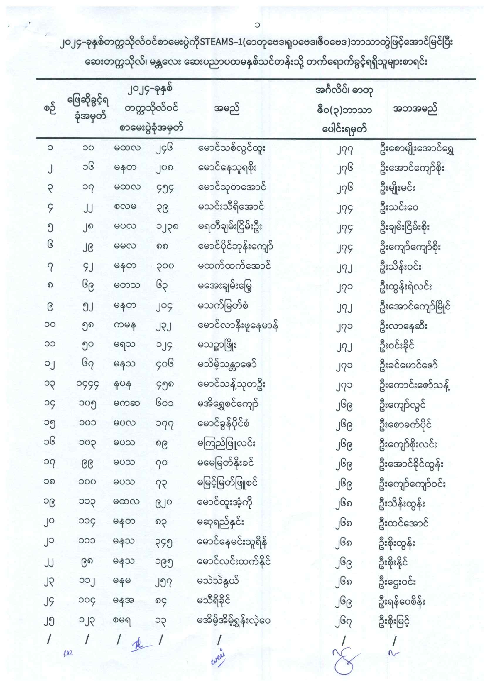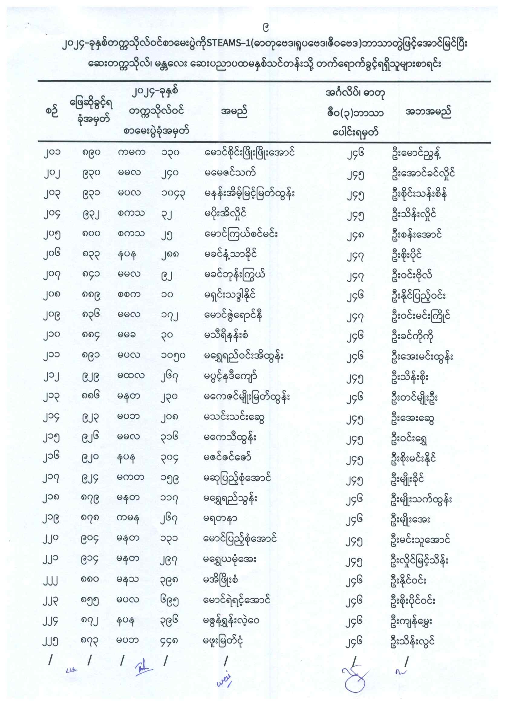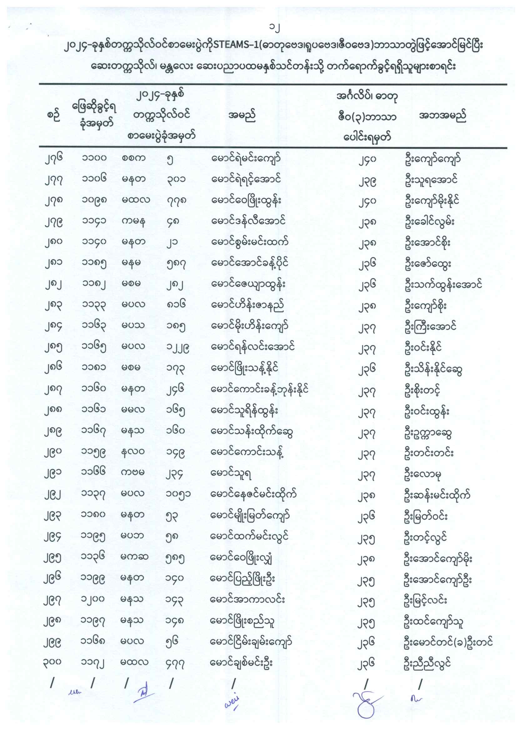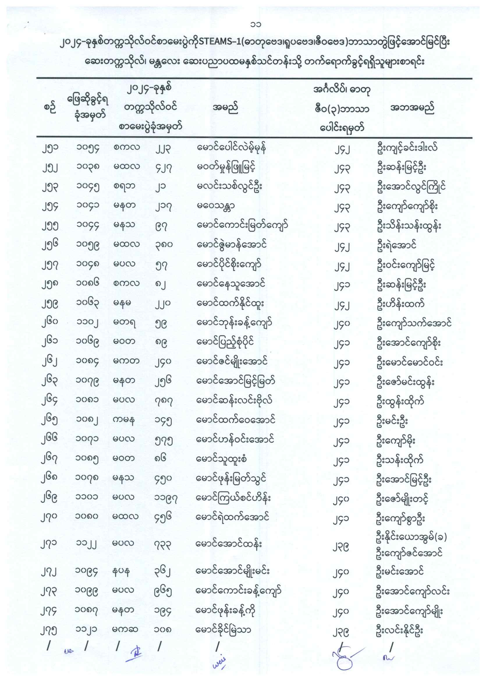 ၂၀၂၅-ပညာသင်နှစ် ဆေးတက္ကသိုလ်(မန္တလေး) ပထမနှစ်သင်တန်းသို့ ဝင်ခွင့်ရရှိသောကျောင်းသားကျောင်းသူများစာရင်း