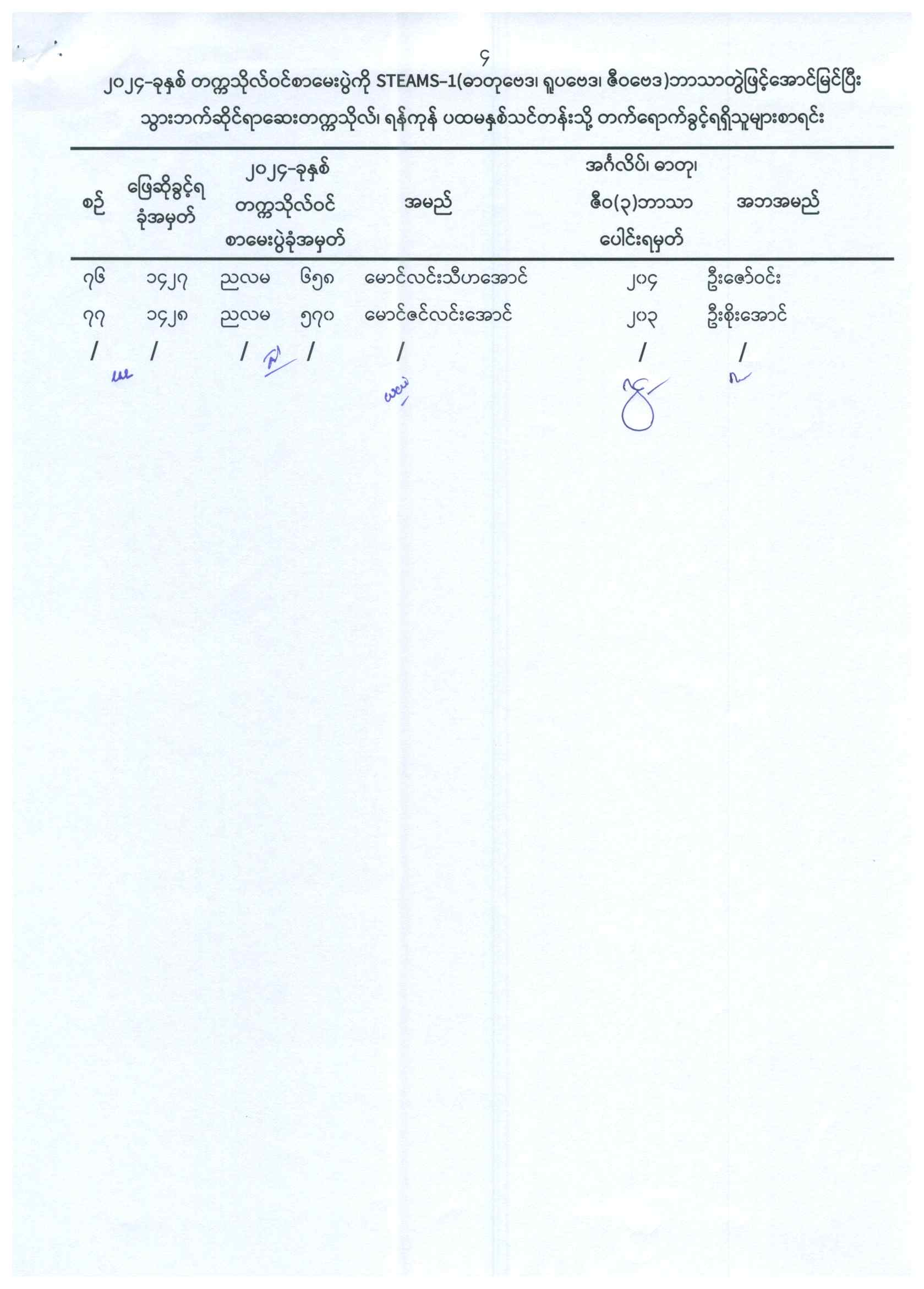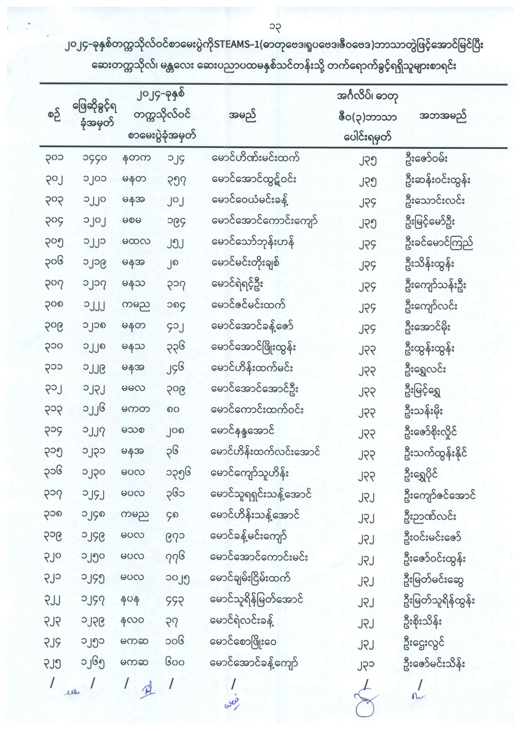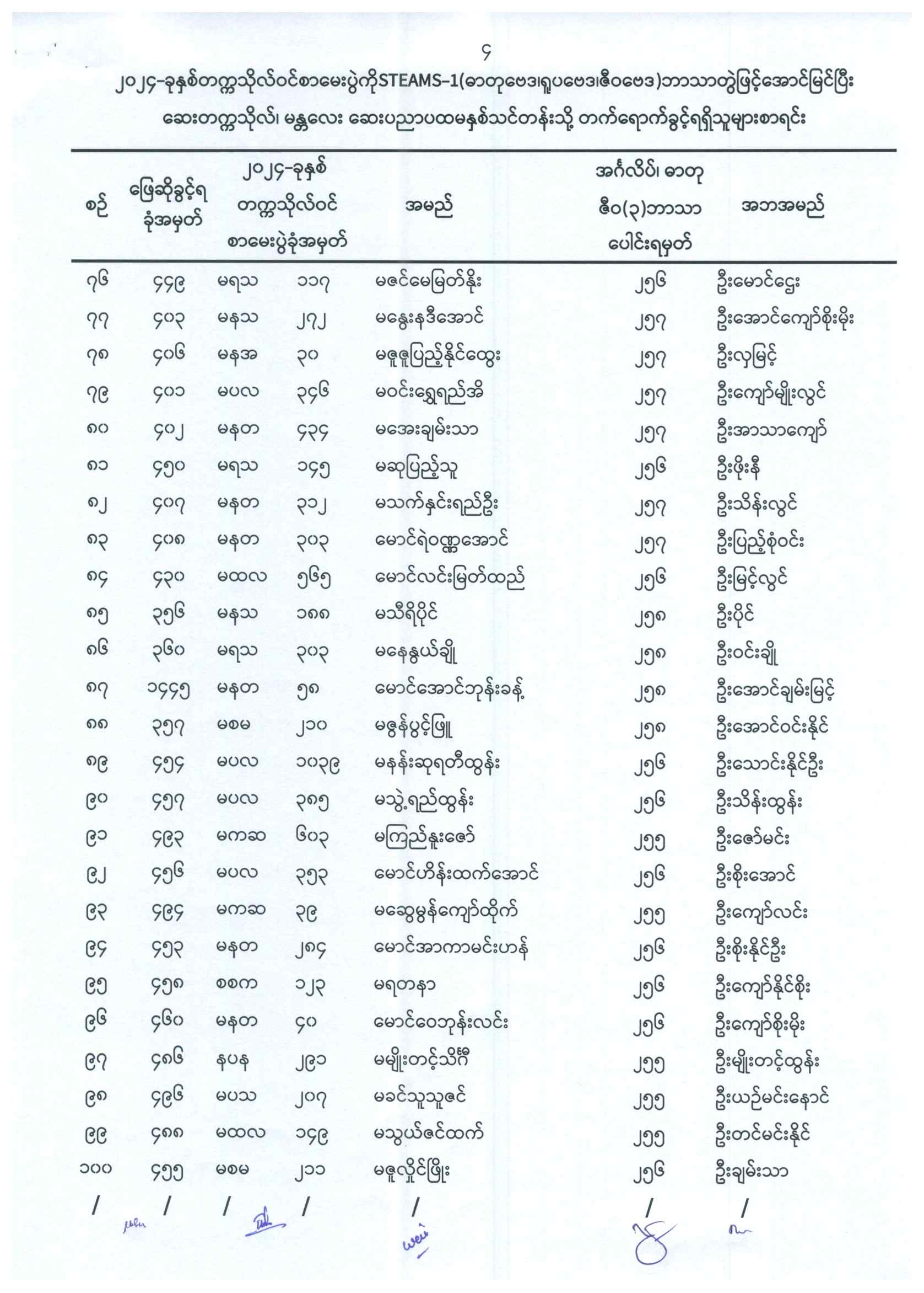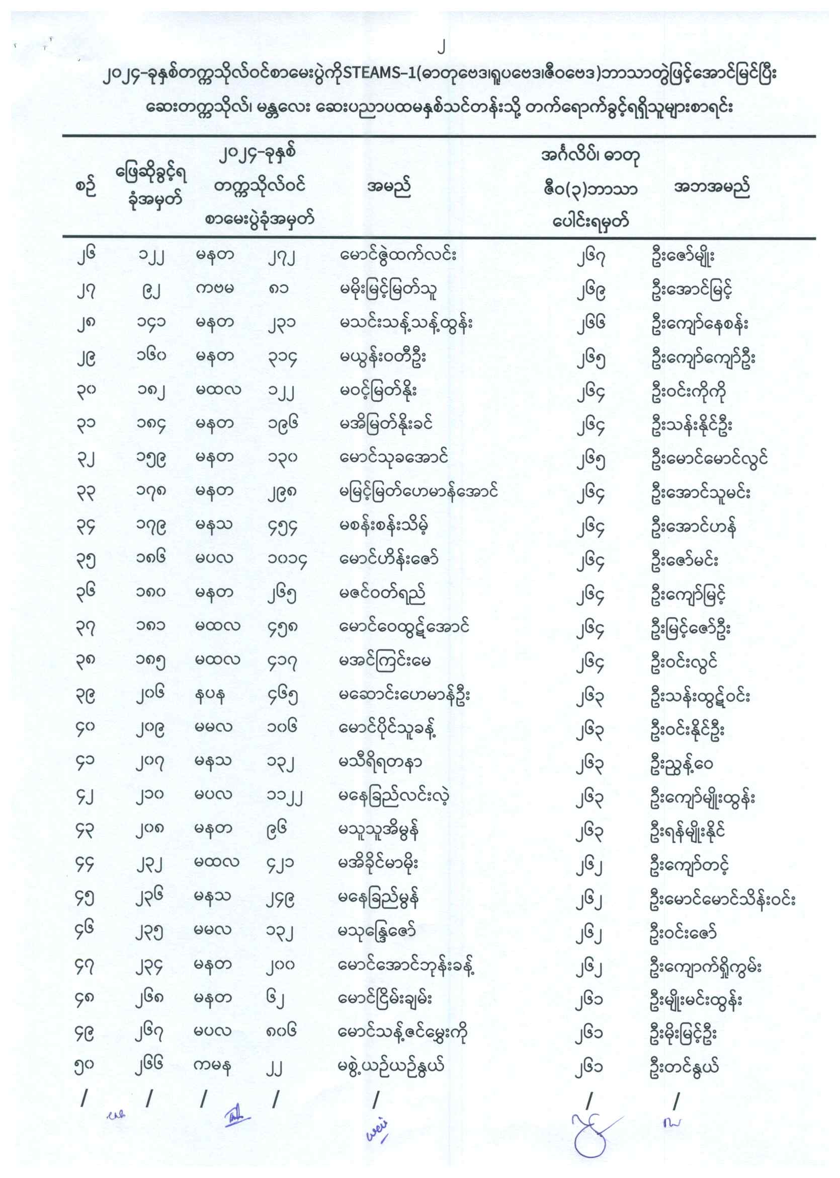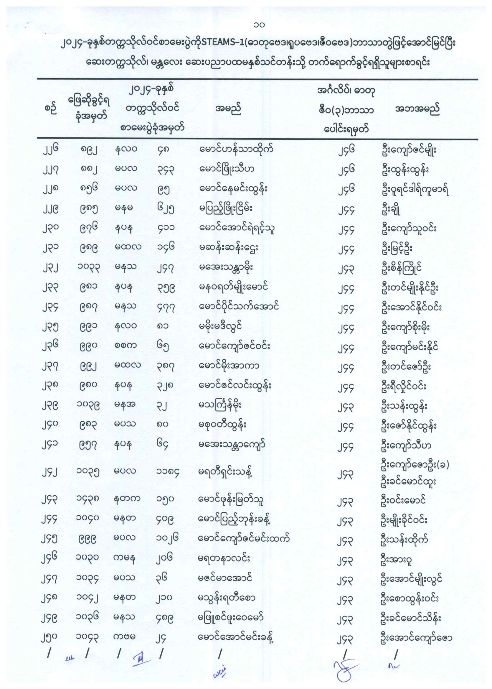 ၂၀၂၅-ပညာသင်နှစ် ဆေးတက္ကသိုလ်(မန္တလေး) ပထမနှစ်သင်တန်းသို့ ဝင်ခွင့်ရရှိသောကျောင်းသားကျောင်းသူများစာရင်း