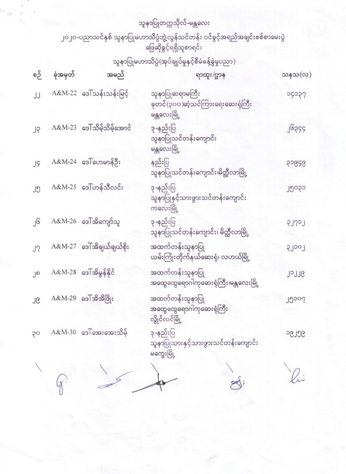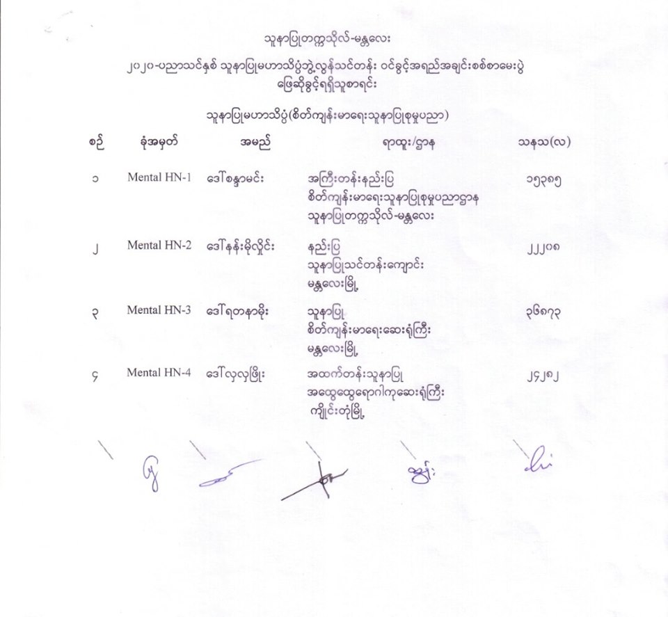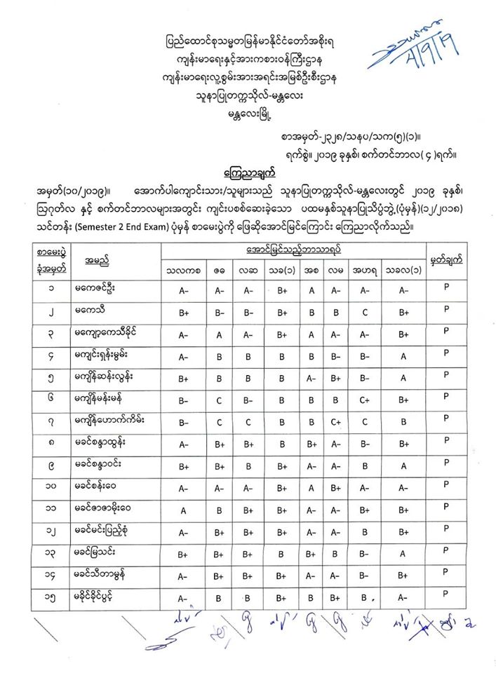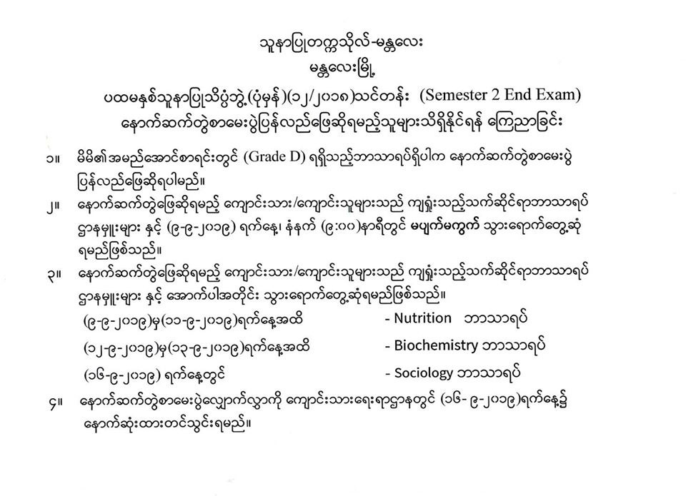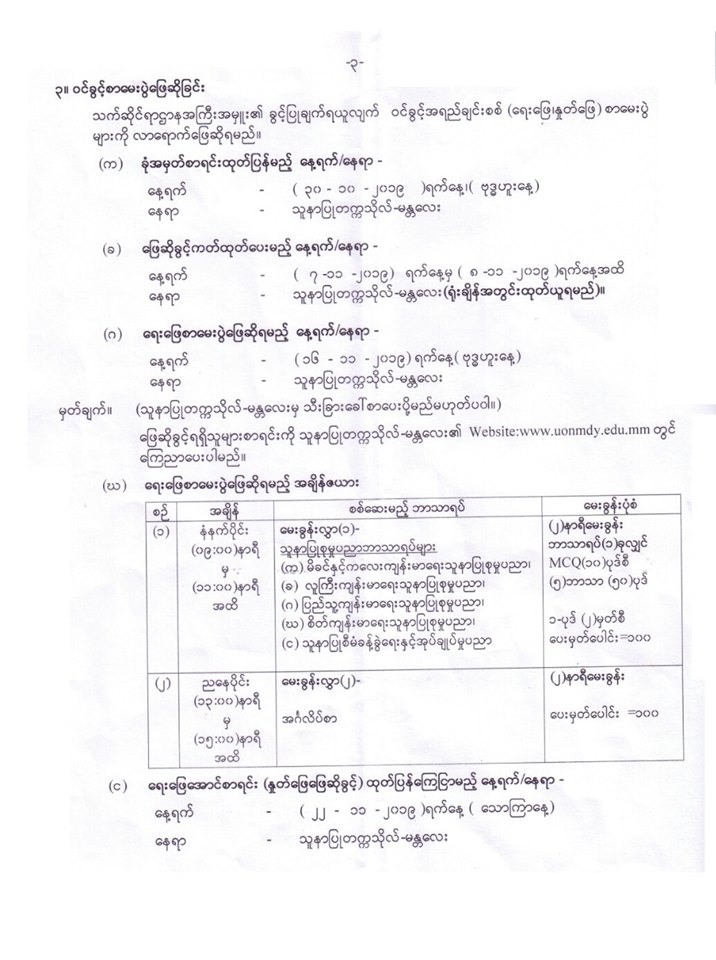 ၂၀၂၀ ပညာသင်နှစ် သူနာပြုတက္ကသိုလ်-မန္တလေး တွင်ဖွင့်လှစ်မည့် သူနာပြုမဟာသိပ္ပံဘွဲ့လွန် ဝင်ခွင့်အရည်အချင်းစစ်စာမေးပွဲ ဖြေဆိုခွင့်ရရှိသူများ၏ ခုံအမှတ်စာရင်း