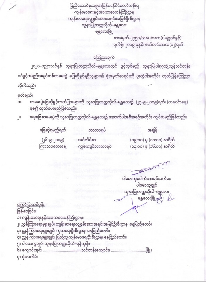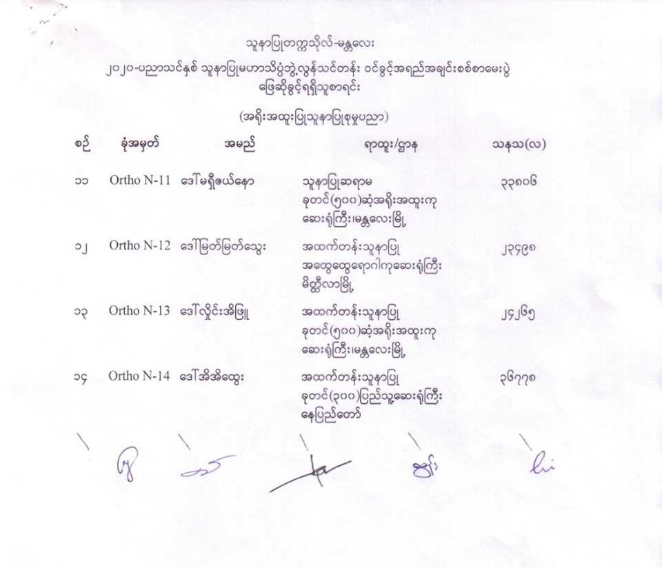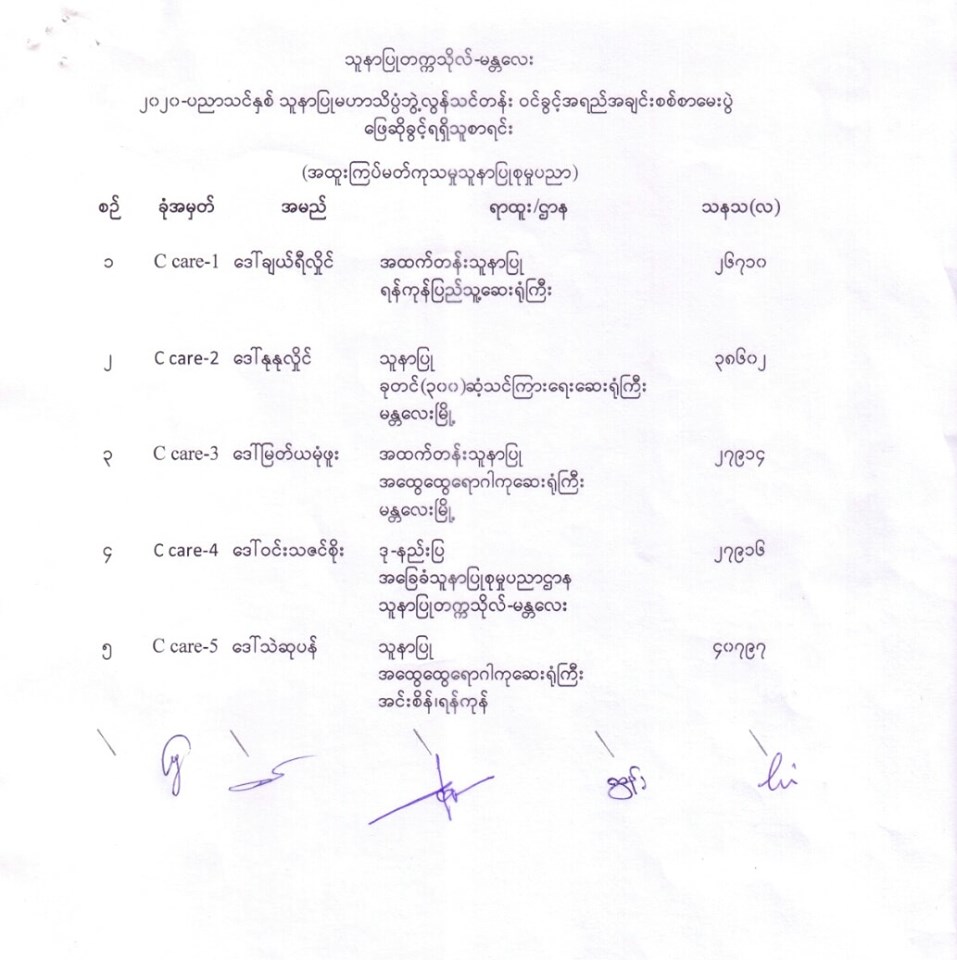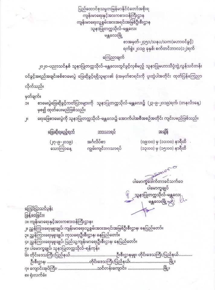 ၂၀၂၀ ပညာသင်နှစ် သူနာပြုတက္ကသိုလ်-မန္တလေး တွင်ဖွင့်လှစ်မည့် သူနာပြုမဟာသိပ္ပံဘွဲ့လွန် ဝင်ခွင့်အရည်အချင်းစစ်စာမေးပွဲ ဖြေဆိုခွင့်ရရှိသူများ၏ ခုံအမှတ်စာရင်း