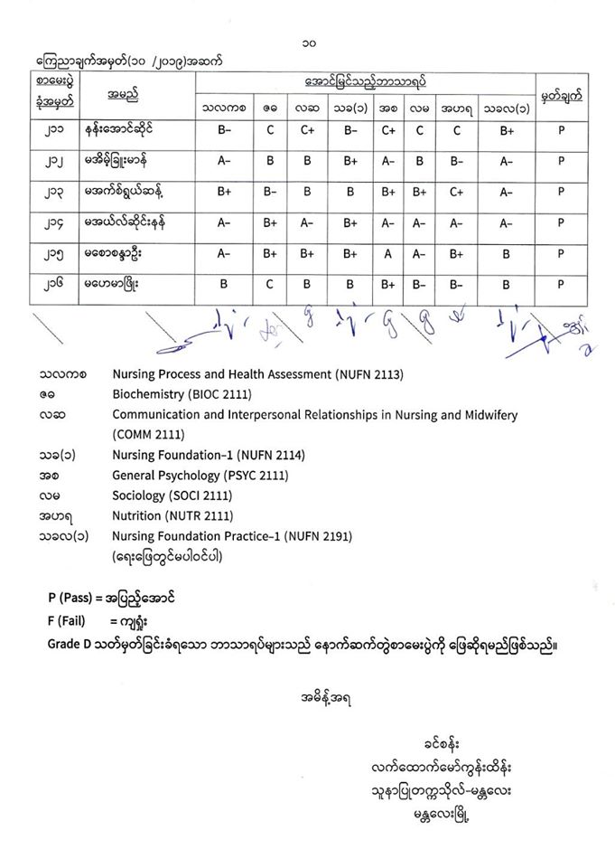 ပထမနှစ်သူနာပြုသိပ္ပံဘွဲ့(ပုံမှန်)(၁၂/၂၀၁၈)