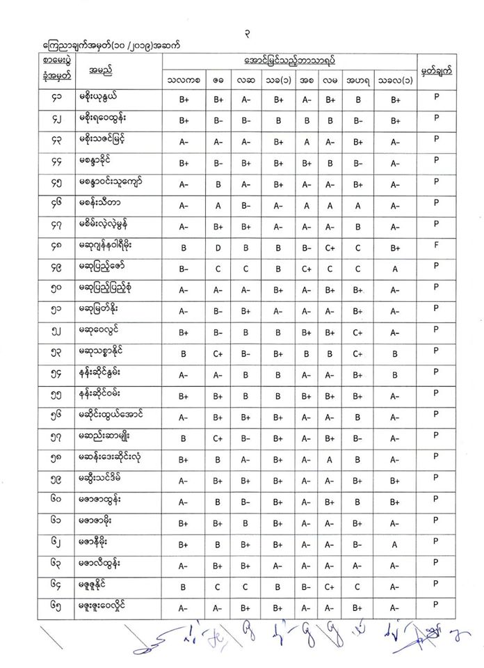 ၂၀၂၀ ပညာသင်နှစ် သူနာပြုတက္ကသိုလ်-မန္တလေး တွင်ဖွင့်လှစ်မည့် သူနာပြုပါရဂူဘွဲ့ ဝင်ခွင့်အရည်အချင်းစစ်စာမေးပွဲ ဖြေဆိုခွင့်ရရှိသူများ၏ ခုံအမှတ်စာရင်း