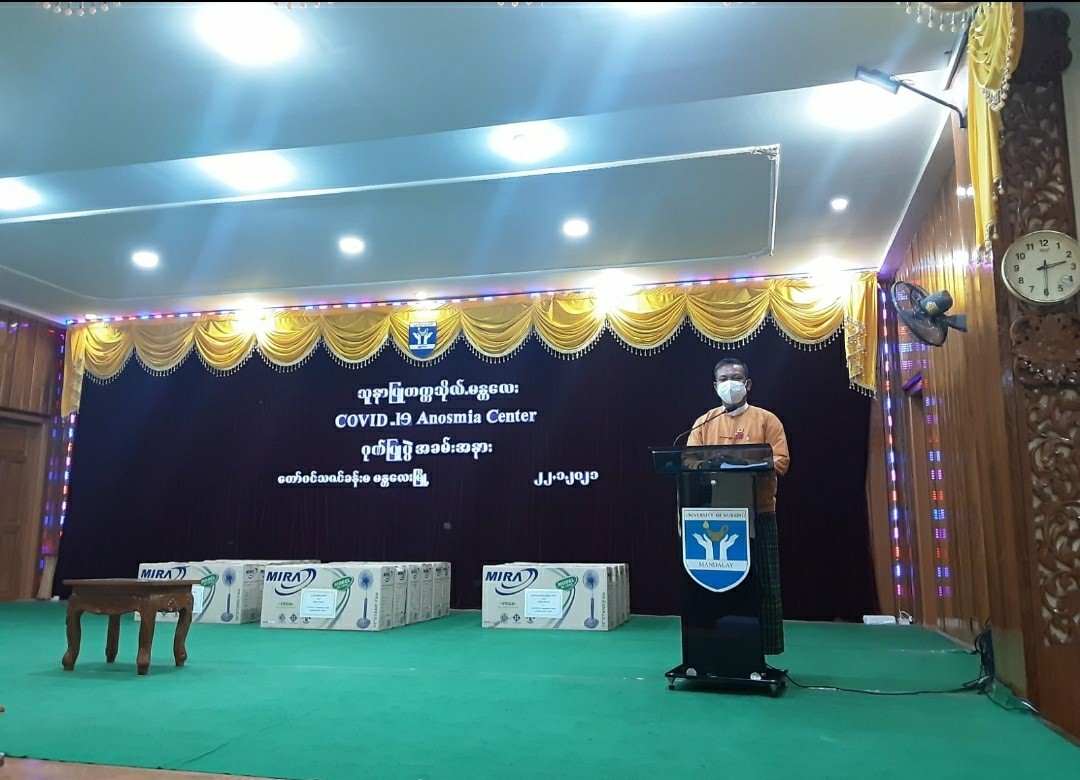 သူနာပြုတက္ကသိုလ် - မန္တလေး ၊ Covid-19 Anosmia Center အောင်မြင်စွာဆောင်ရွက်နိုင်ခဲ့သည့်အတွက် တာဝန်ထမ်းဆောင်ခဲ့ကြသည့် ကျန်းမာရေးဝန်ထမ်းများ၊ စေတနာ့ဝန်ထမ်းများ၊ လူမှုရေးအသင်းအဖွဲ့များအား ဂုဏ်ပြုပွဲအခမ်းအနားကို 22.1.2021 ရက်နေ့တွင် သူနာပြုတက္ကသိုလ်-မန္တလေး တော်ဝင်သဇင်ခန်းမ၌ ကျင်းပပြုလုပ်ခဲ့ပါသည်။