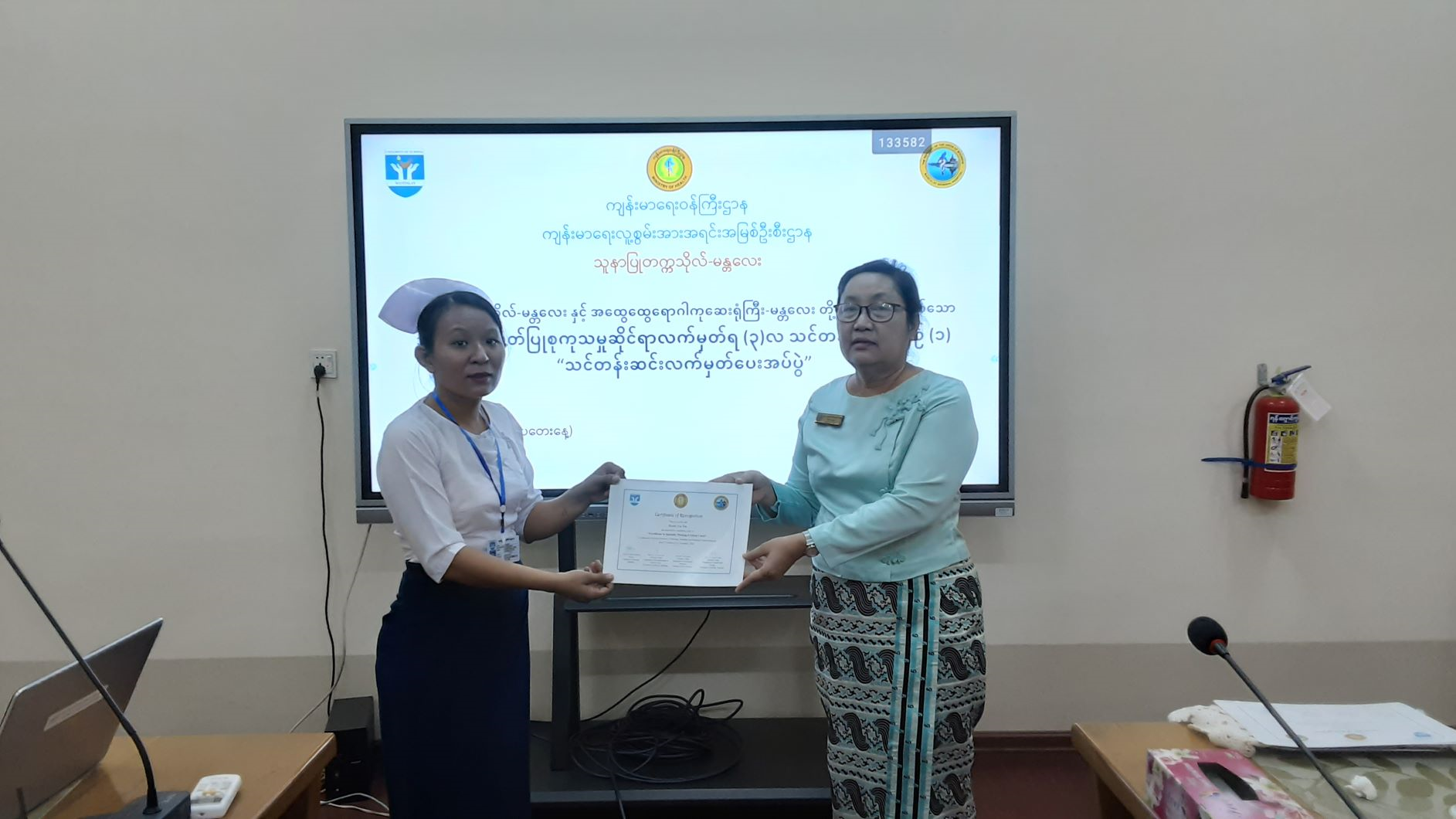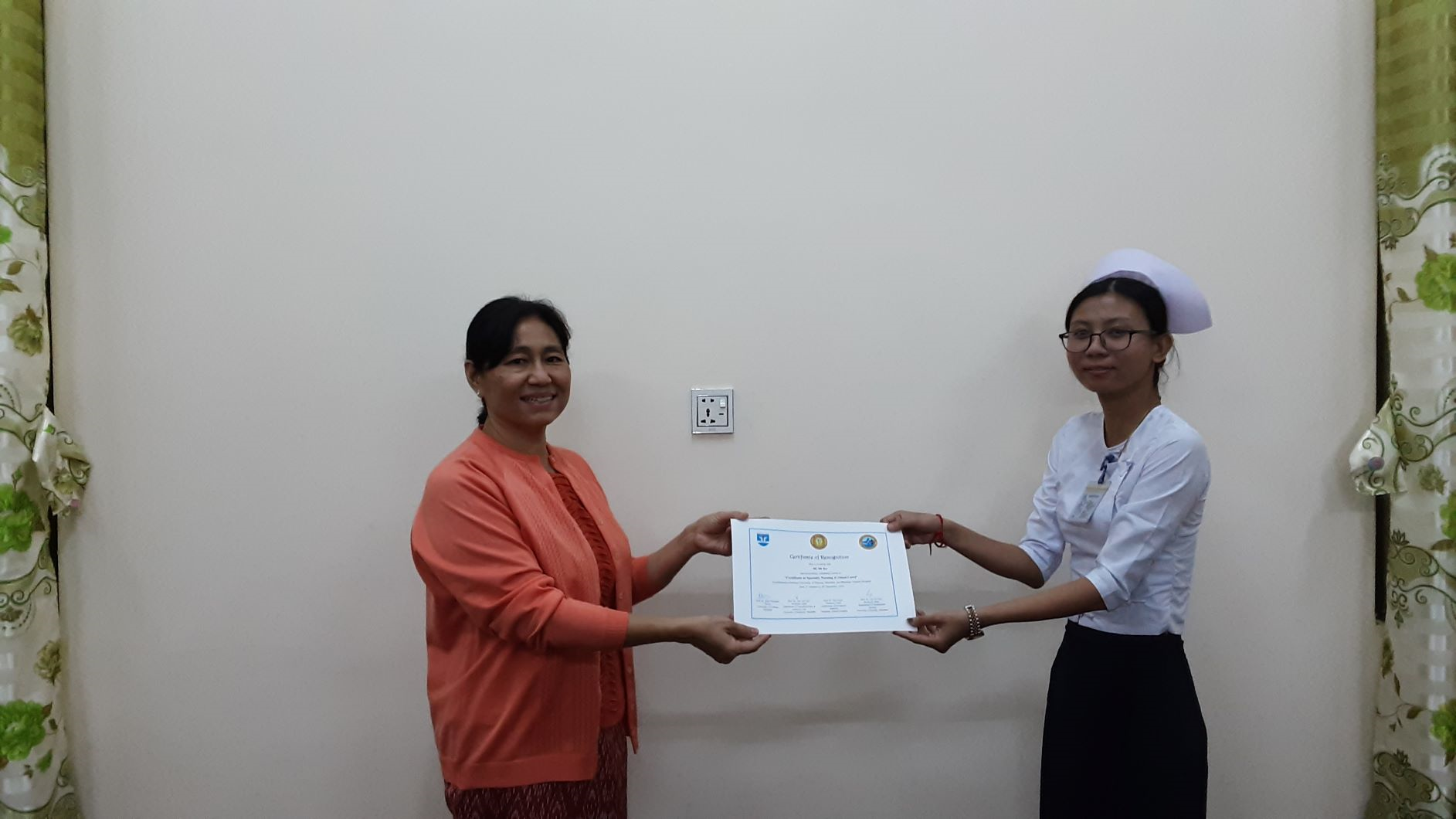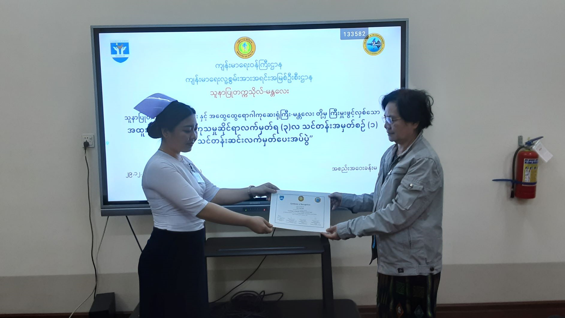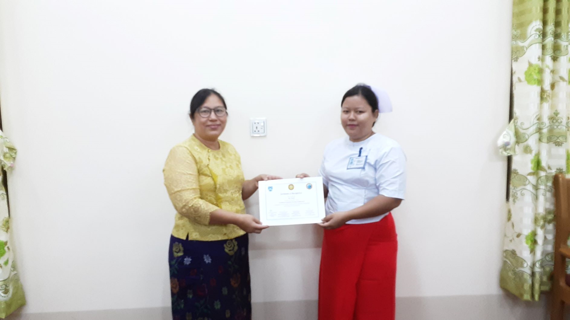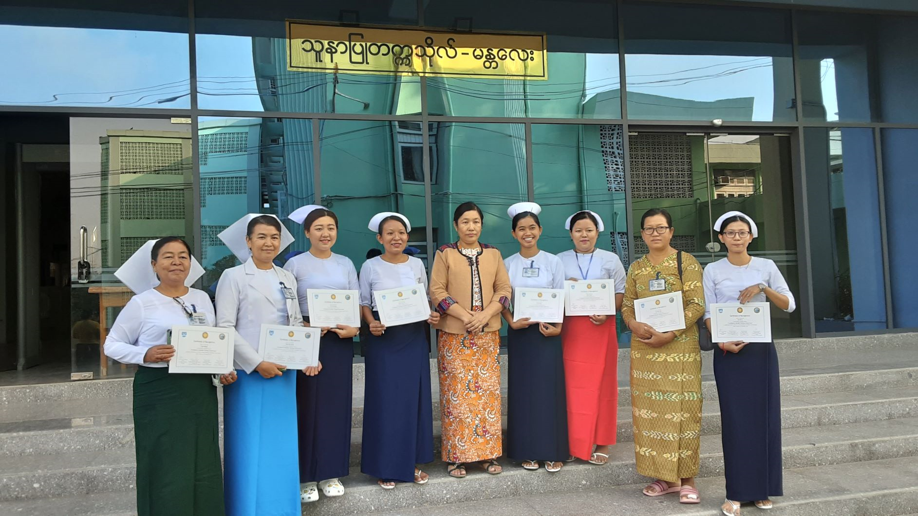 သူနာပြုတက္ကသိုလ်၊မန္တလေးနှင့် အထွေထွေရောဂါကုဆေးရုံကြီးမန္တလေးတို့မှ ကြီးမှူးဖွင့်လှစ်သော အထူးကြပ်မတ်ပြုစုကုသမှုဆိုင်ရာ လက်မှတ်ရ (၃)လသင်တန်း အမှတ်စဉ်(၁) သင်တန်းဆင်းလက်မှတ်ပေးအပ်ပွဲအခမ်းအနားမှတ်တမ်း ဓာတ်ပုံများ