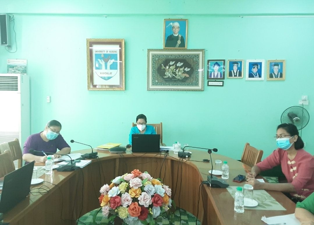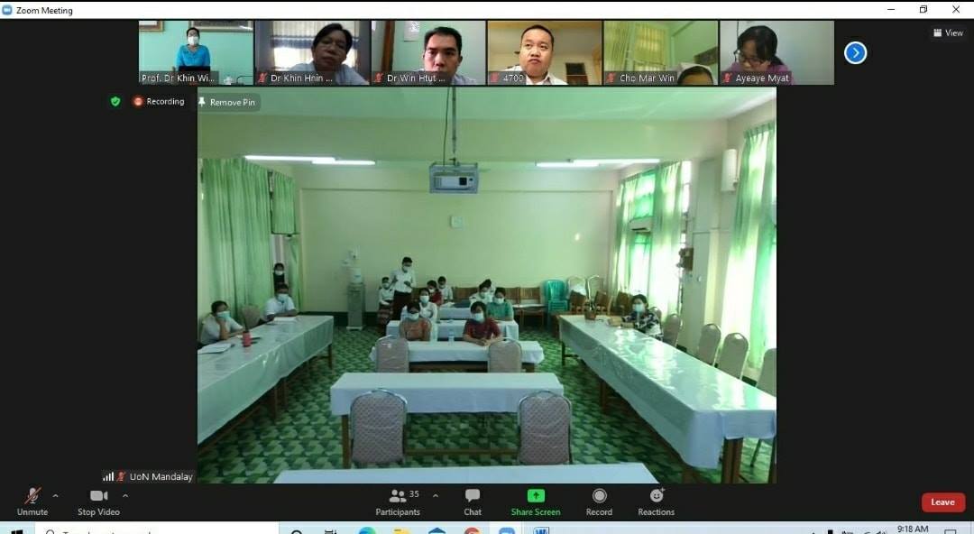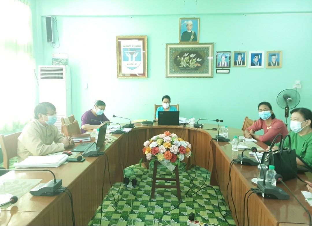 Work from Home မှ တာဝန်ထမ်းဆောင်နေသော ဆရာ/ဆရာမများ သည် Online မှ Zoom Application ဖြင့် အစည်းအဝေးတက်ရောက်